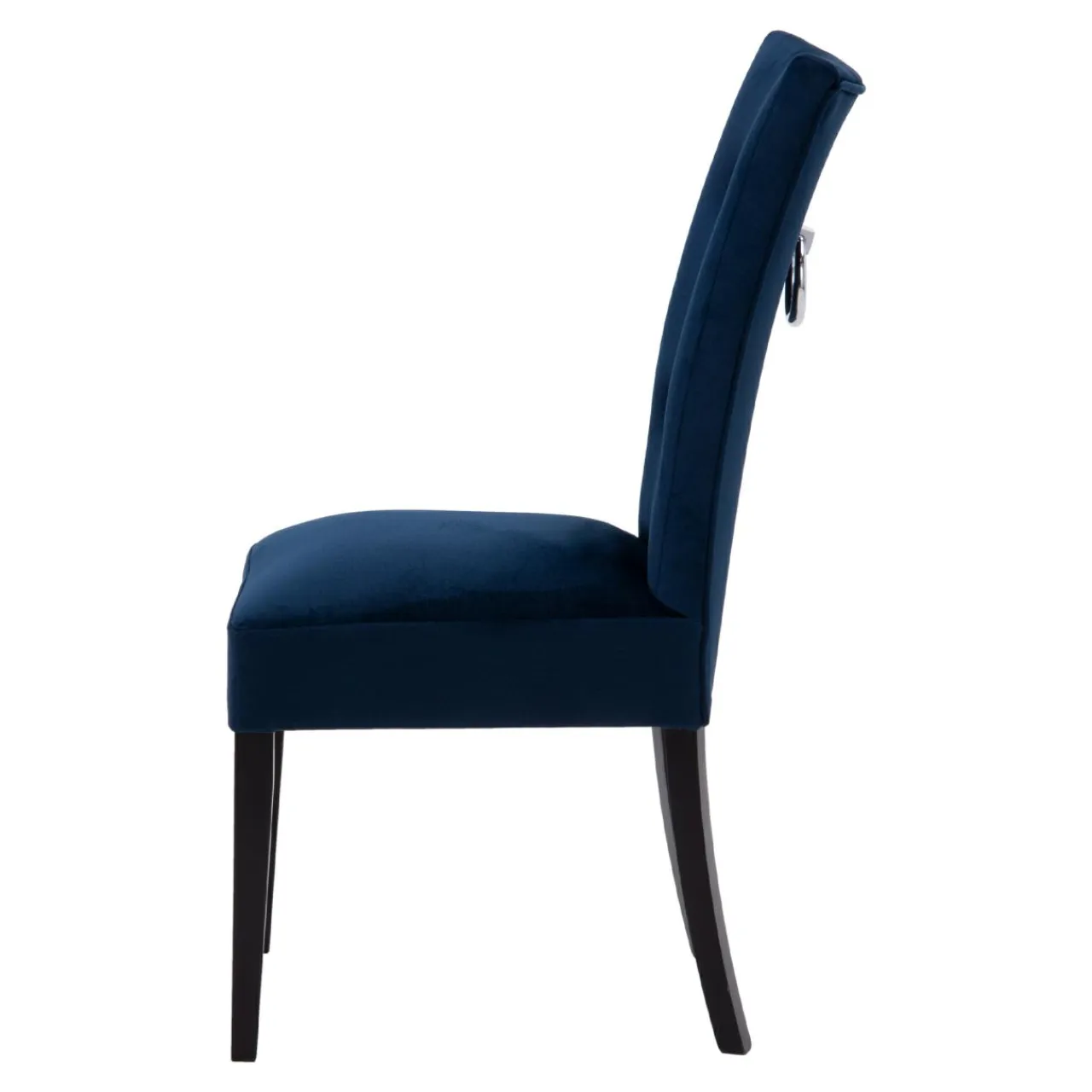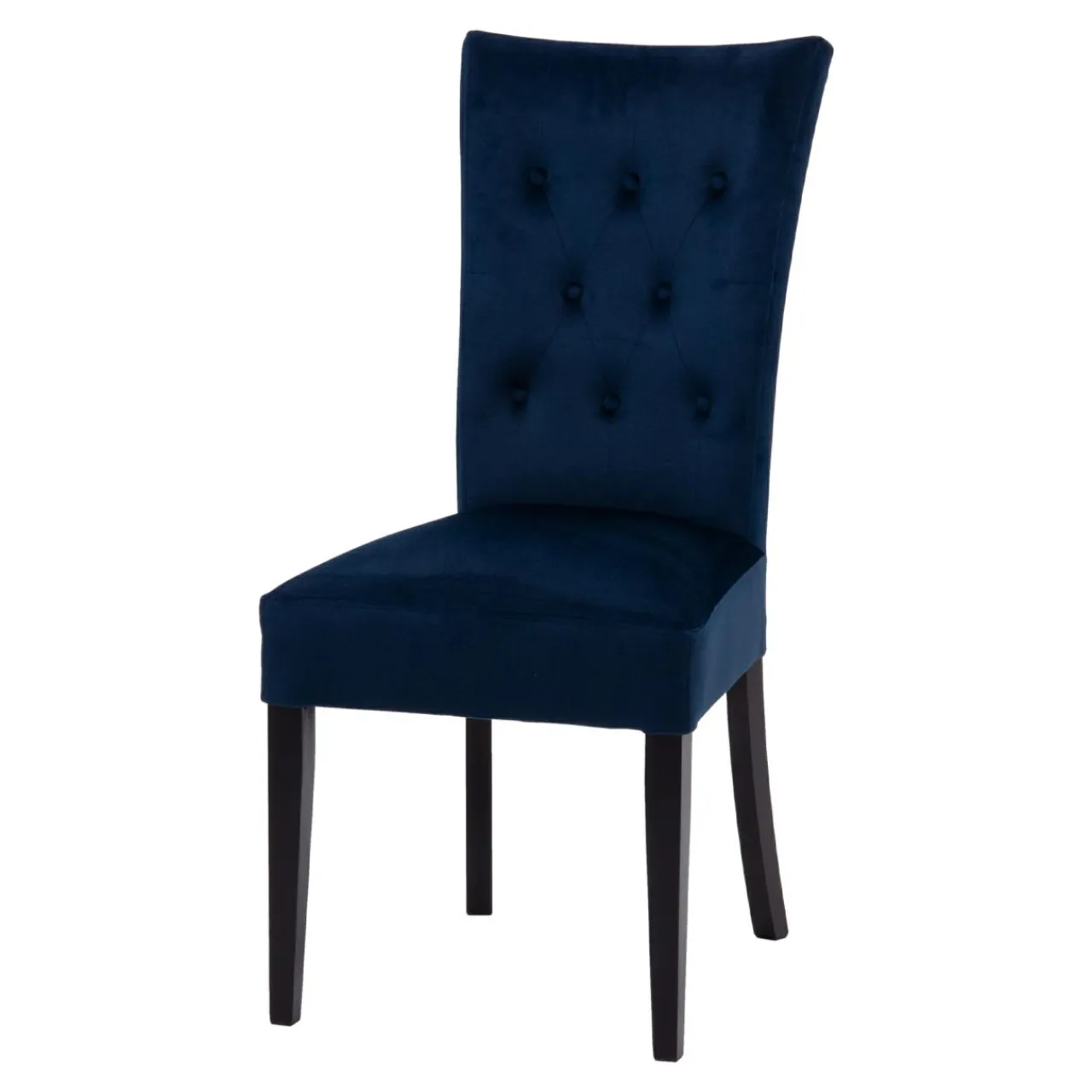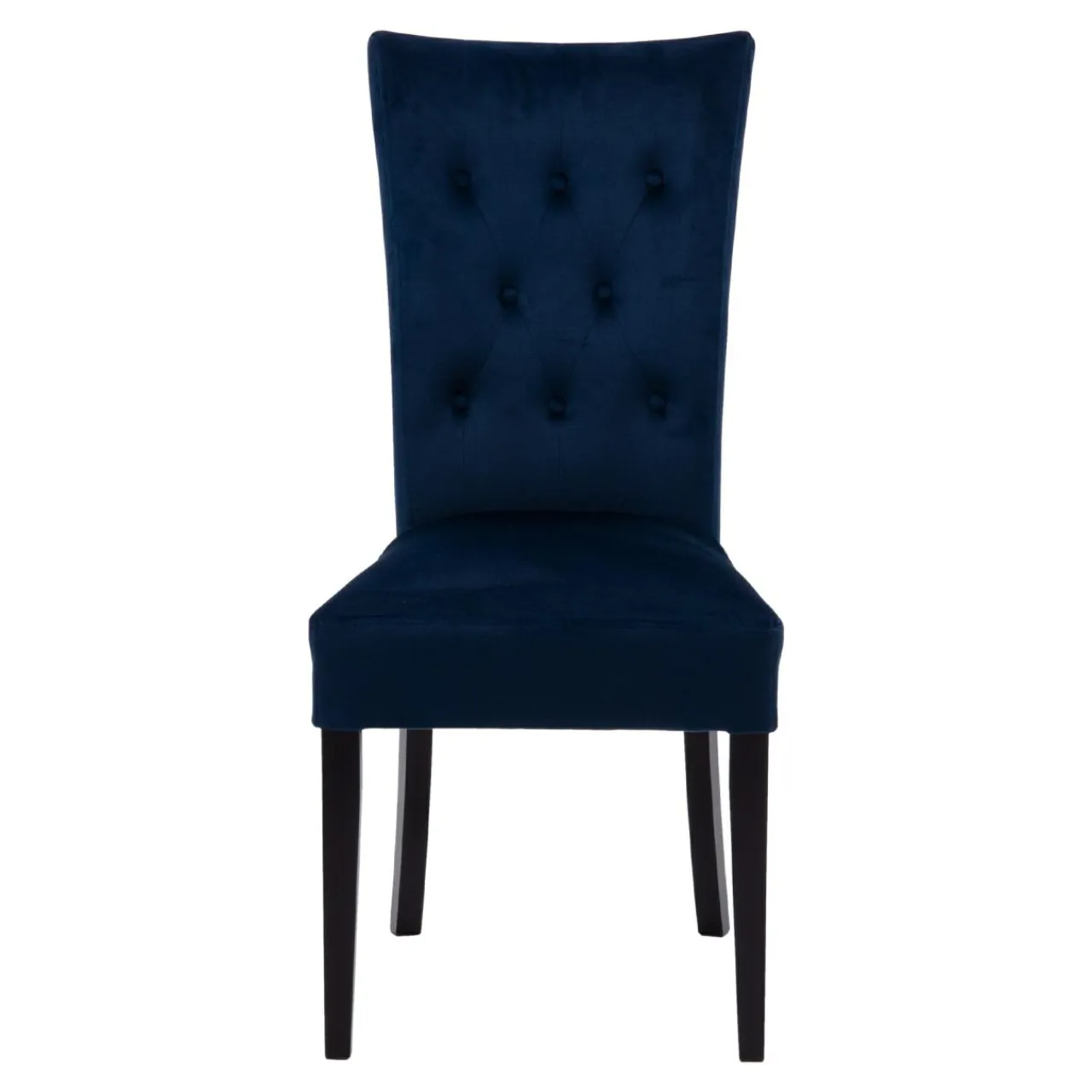 Stelaż i nogi krzesła VERMONT z drewna bukowego urokliwie dopełniają ciemnogranatową tapicerkę.