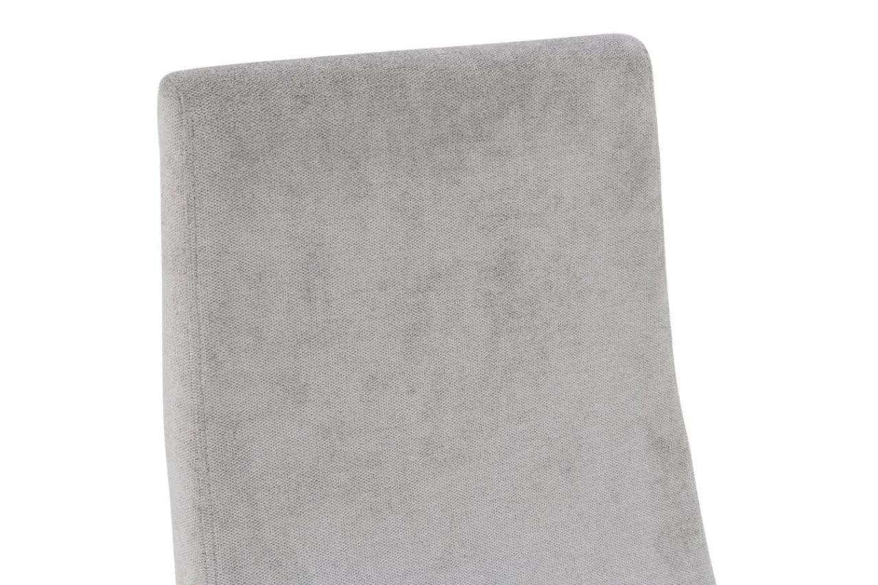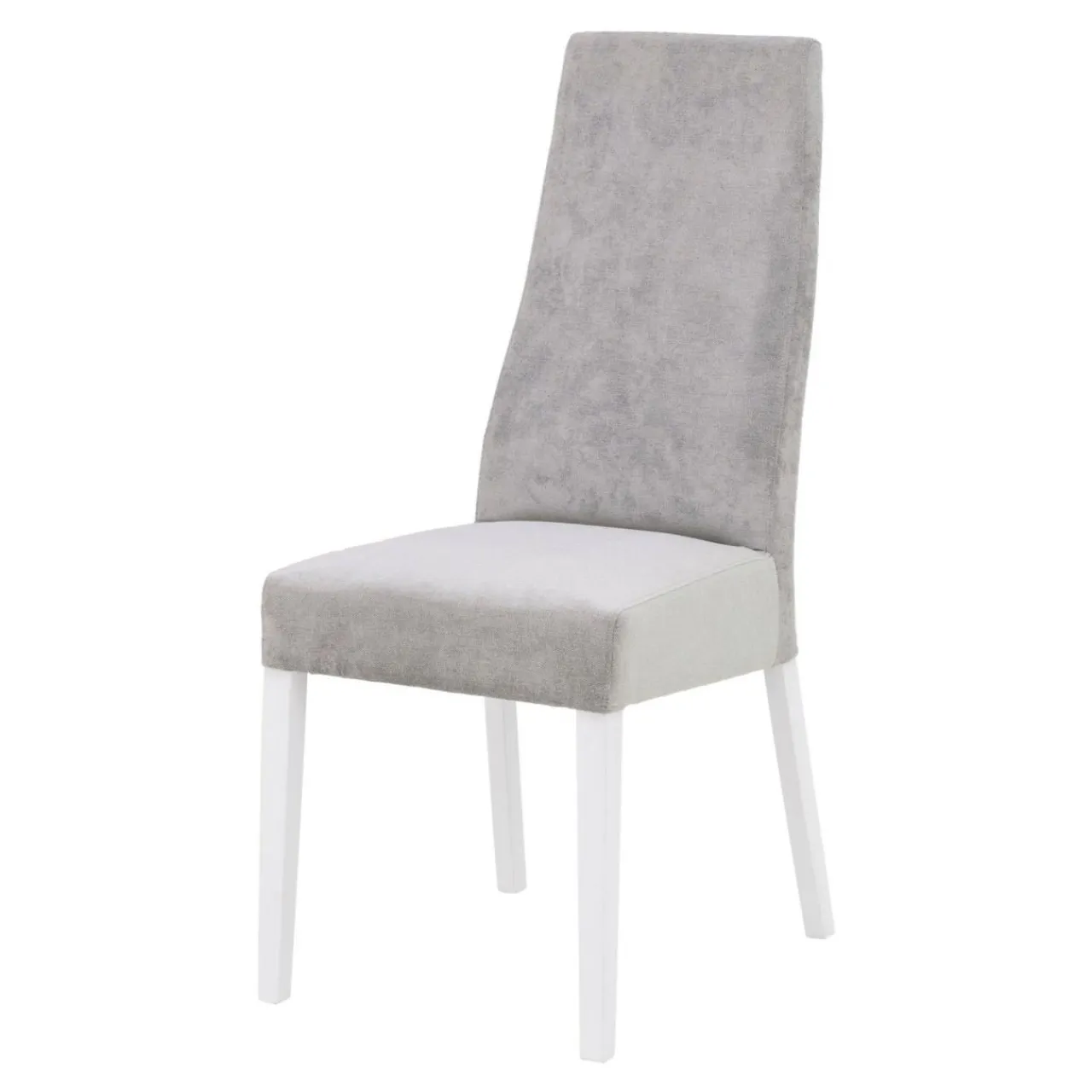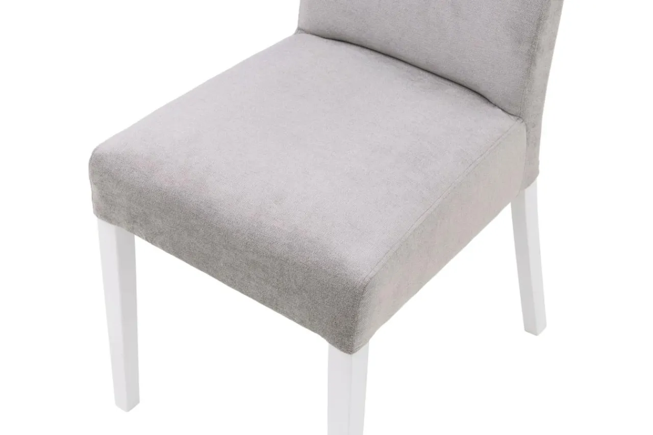 Krzesło wykończono matowym lakierem w białym kolorze. Szara tapicerka prezentuje się elegancko i podkreśla nowoczesny charakter wnętrza.
