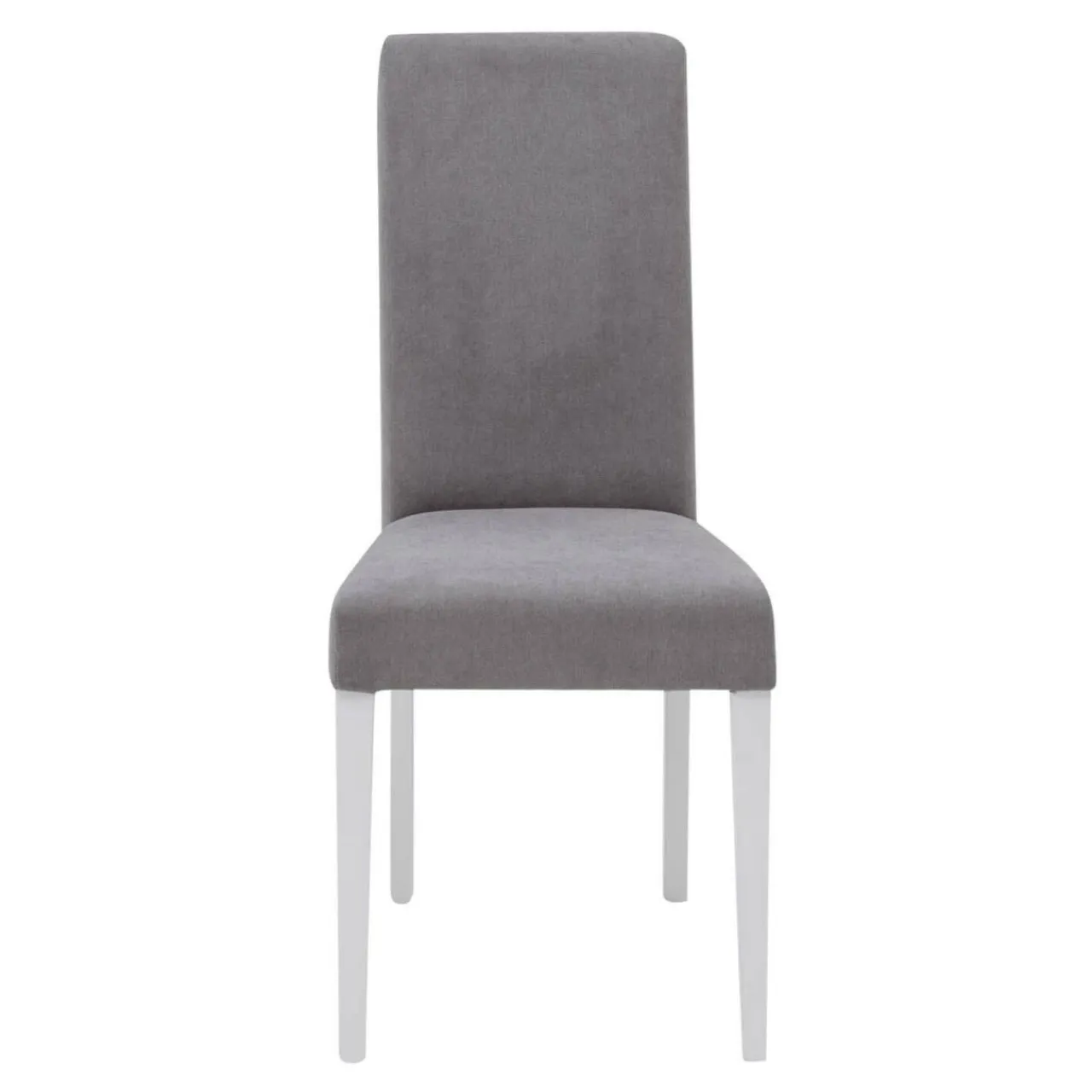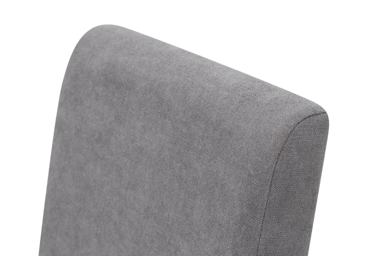 Biała barwa nóg mebla koresponduje z szarością tkaniny na siedzisku i oparciu.