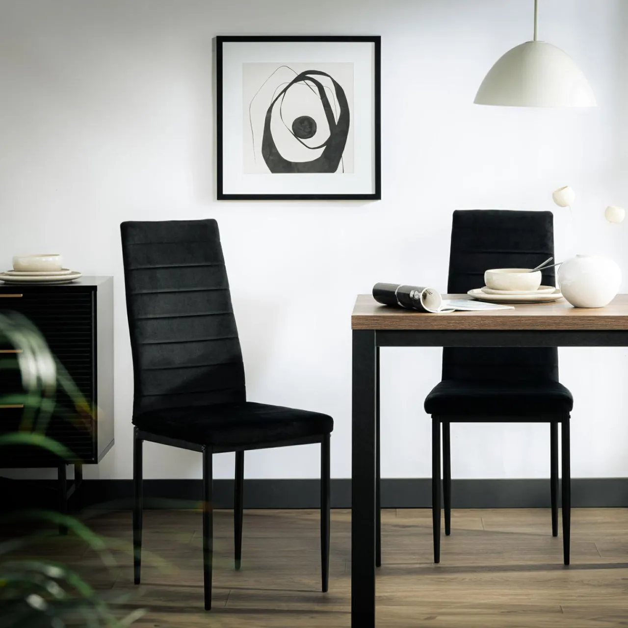 - Czarna tkanina będzie pasowała do nowoczesnego wnętrza.