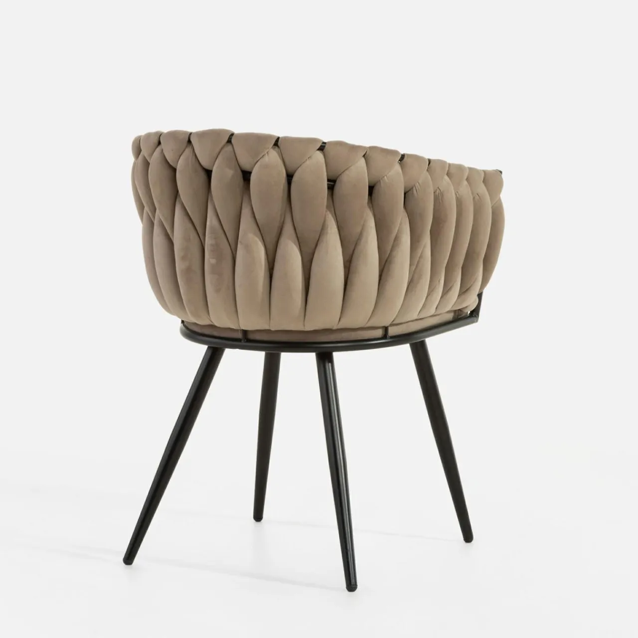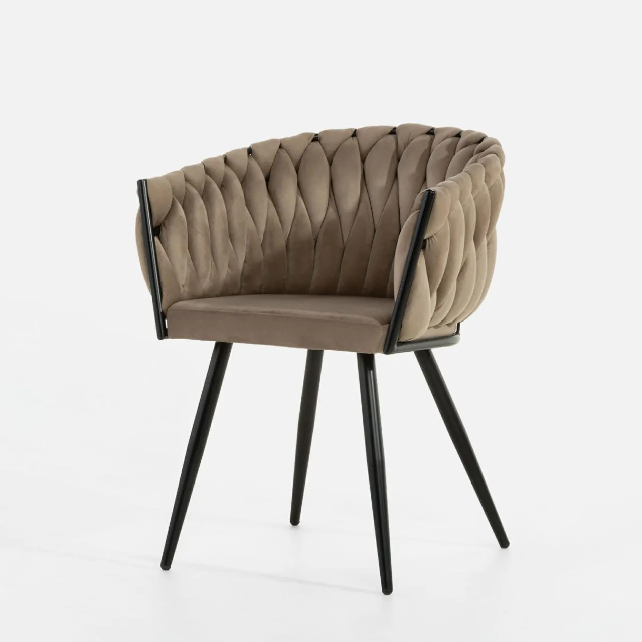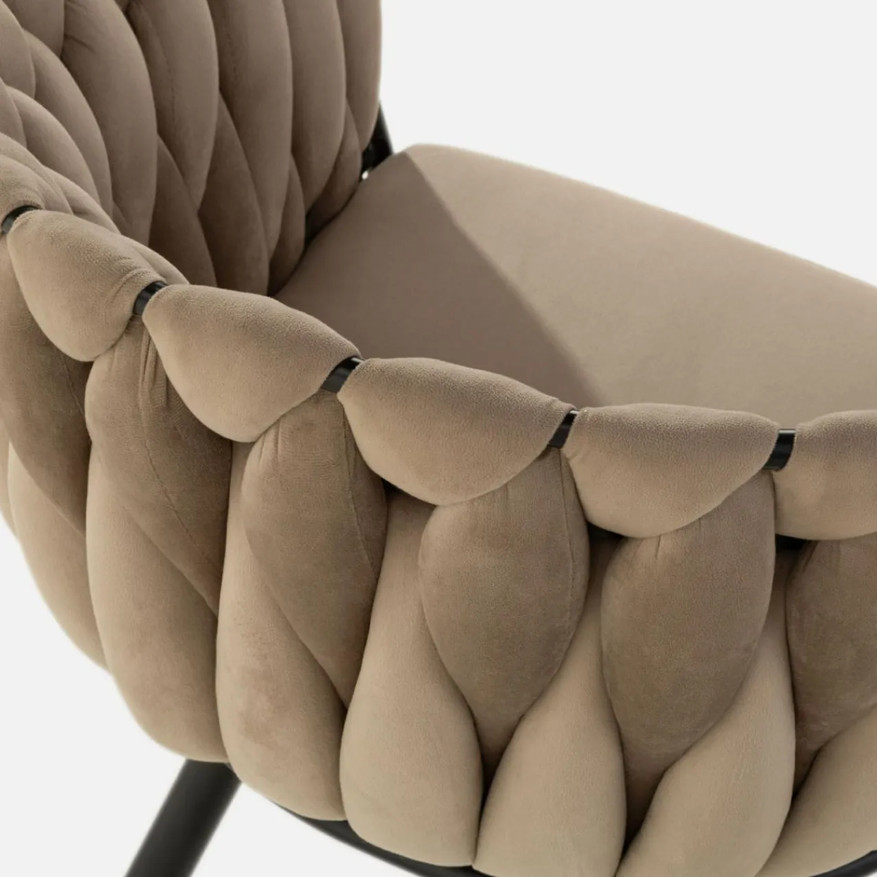 Szukasz eleganckiego krzesła z pazurem? LIANA przykuwa wzrok welurową plecionką i zgrabnymi, czarnymi nogami. Tapicerowane krzesło będzie dodatkiem, obok którego nie sposób przejść obojętnie i doskonale sprawdzi się w aranżacjach w stylu retro lub art deco.