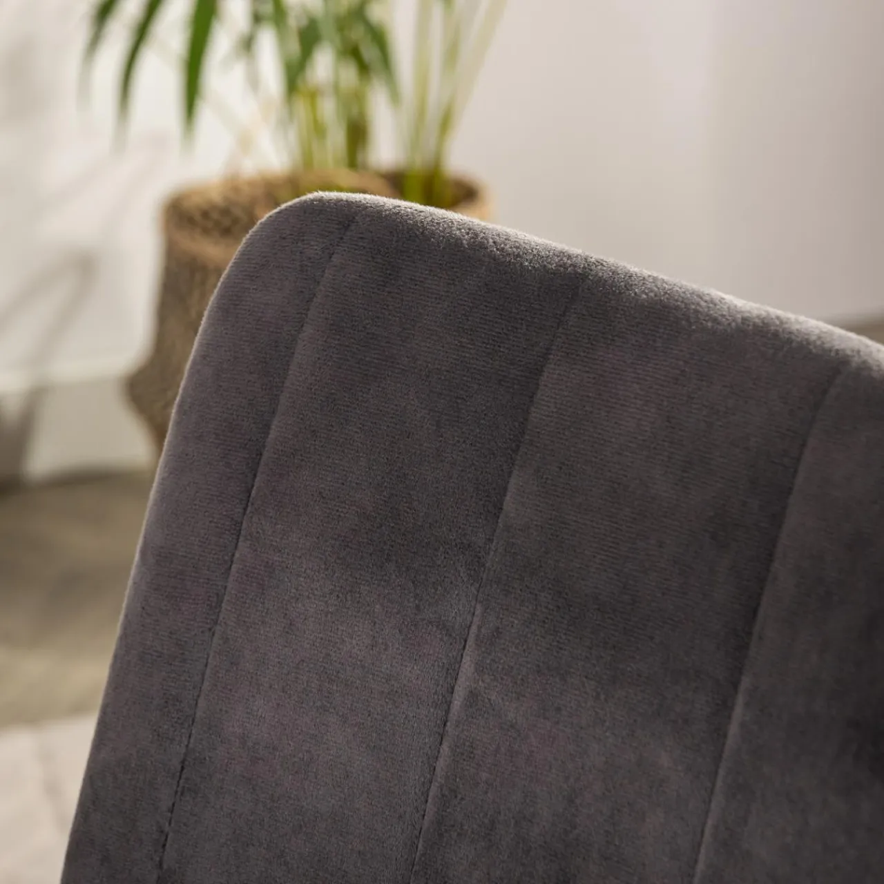 - Szary kolor tapicerki krzesła uzupełni aranżację wnętrza, w której główną rolę odgrywać będą eleganckie barwy.