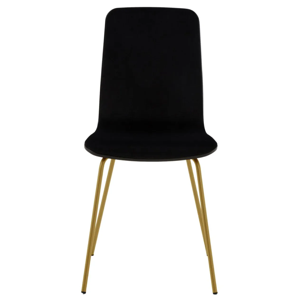 Elegancki czarny welur został połączony z czarnym oparciem i metalowymi nogami w kolorze starego złota. Krzesło tworzy elegancką kompozycję, która wzbogaci Twoje wnętrze o luksusowe odczucia.