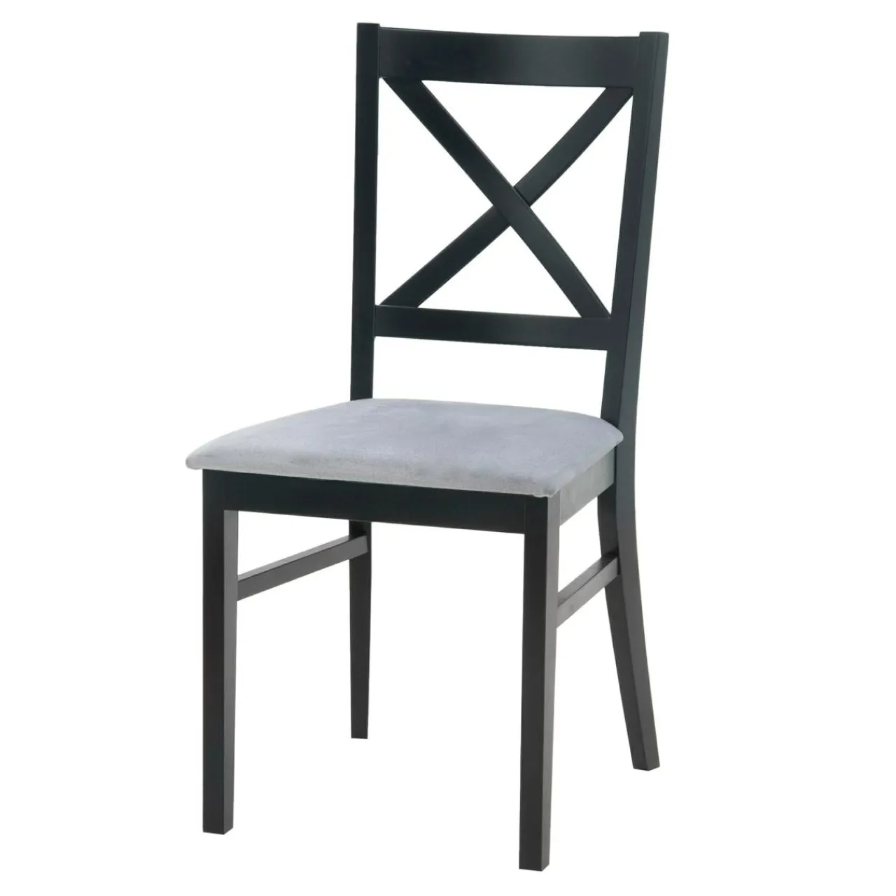 Krzesło ZAYDEN to wyważone połączenie bukowego, barwionego na czarno drewna z welurem, którym pokryto siedzisko.