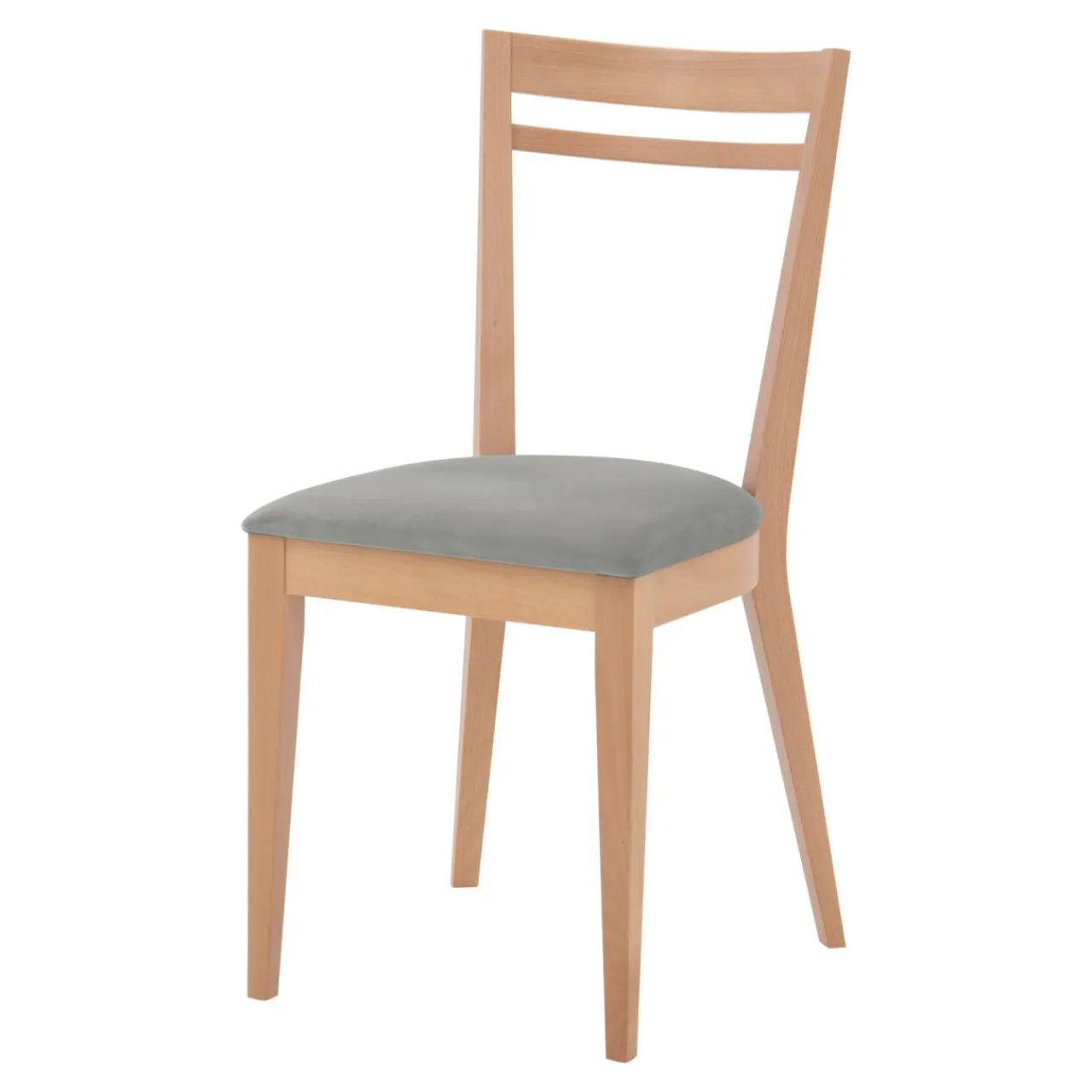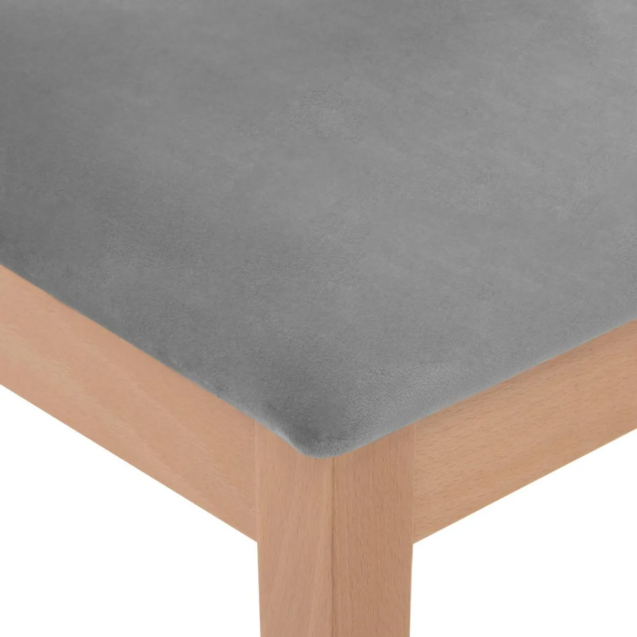 Bukowe krzesło zachwyci naturalnym wyglądem a welurowa tapicerka na siedzisku uprzyjemni czas spędzony przy stole.