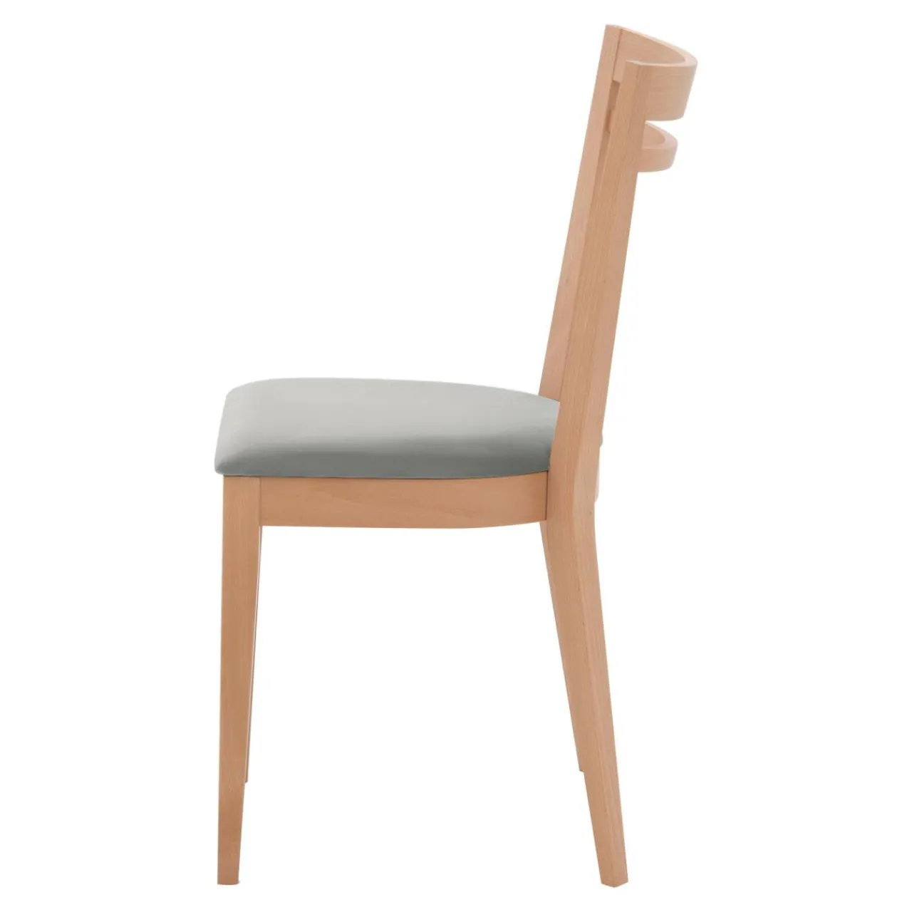 Twoja wymarzona jadalnia ma barwę jasnego drewna? Idealnie wpasuje się w nią drewniane krzesło ERIN z szarym siedziskami.