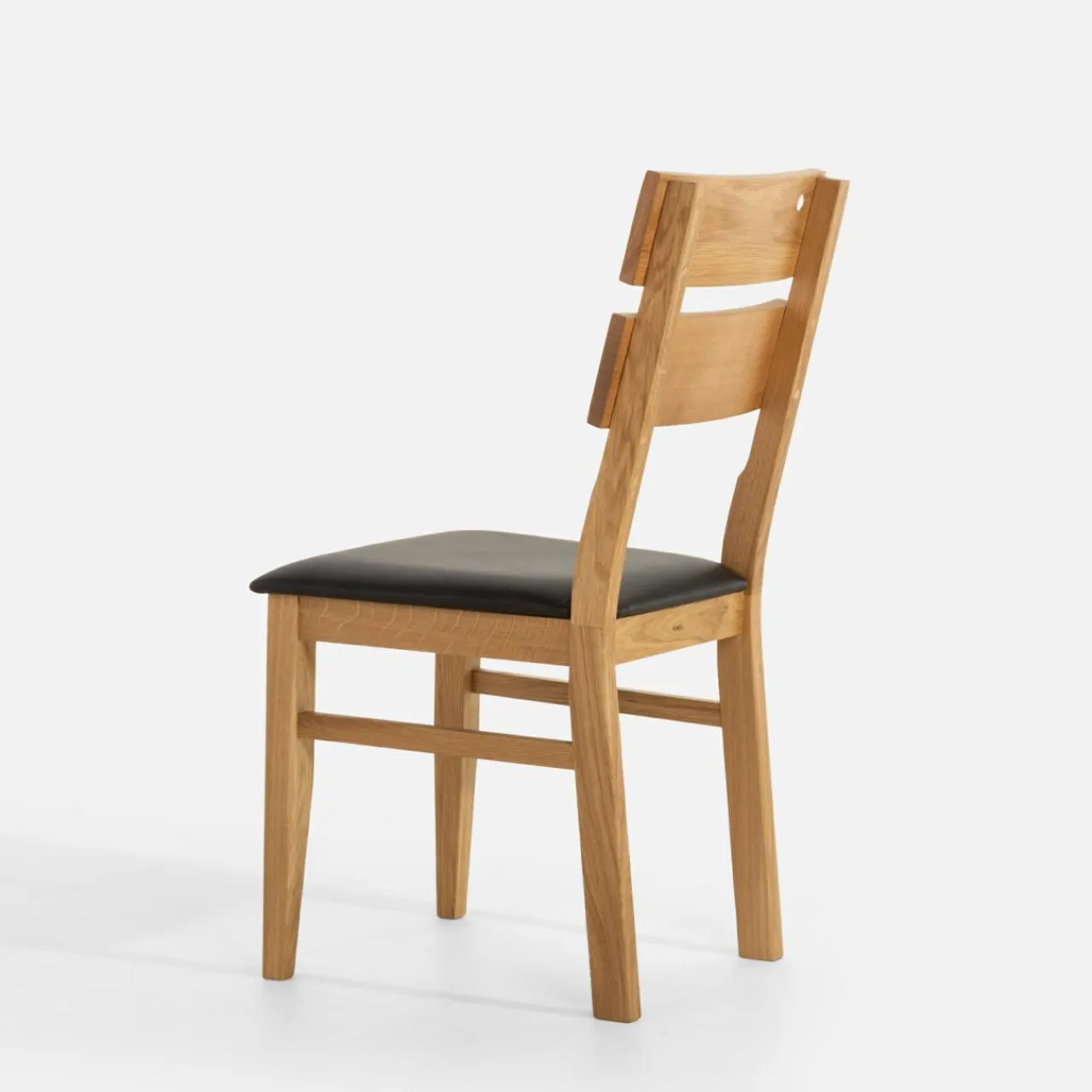 Krzesło LEVKE łączy w sobie jasne drewno dębowe i czarną skórę naturalną na siedzisku – wpasuje się w zarówno klasyczne aranżacje jadalni z elementami drewna jak i te bardziej nowoczesne czy industrialne.