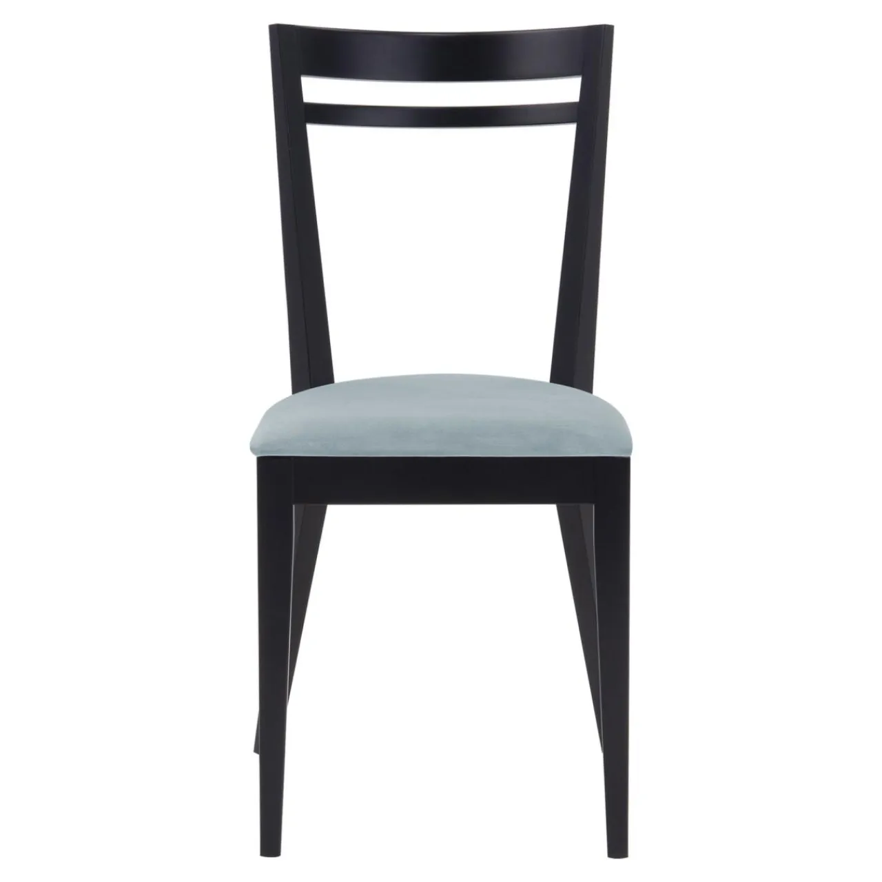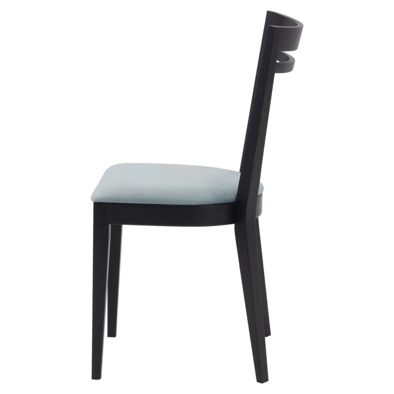 - Krzesło ERIN wykonano z bukowego drewna i zabezpieczono czarną lakobejcą.