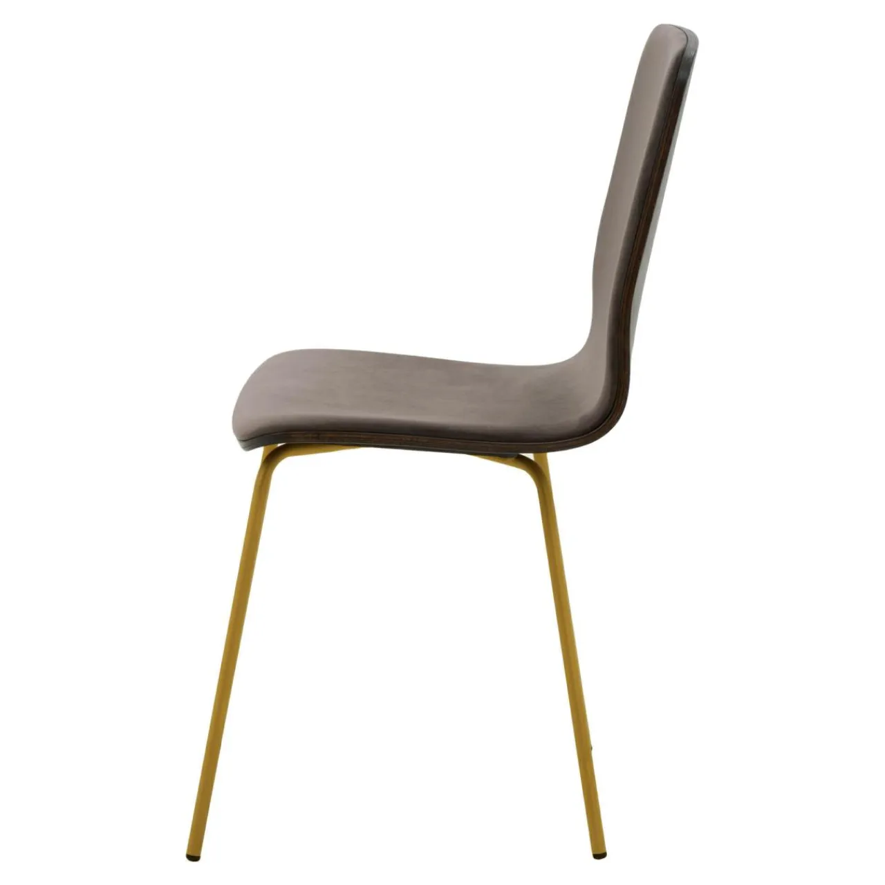 - Smukłe nóżki krzesła wykonano z metalu. Pomalowano je na złoty kolor.