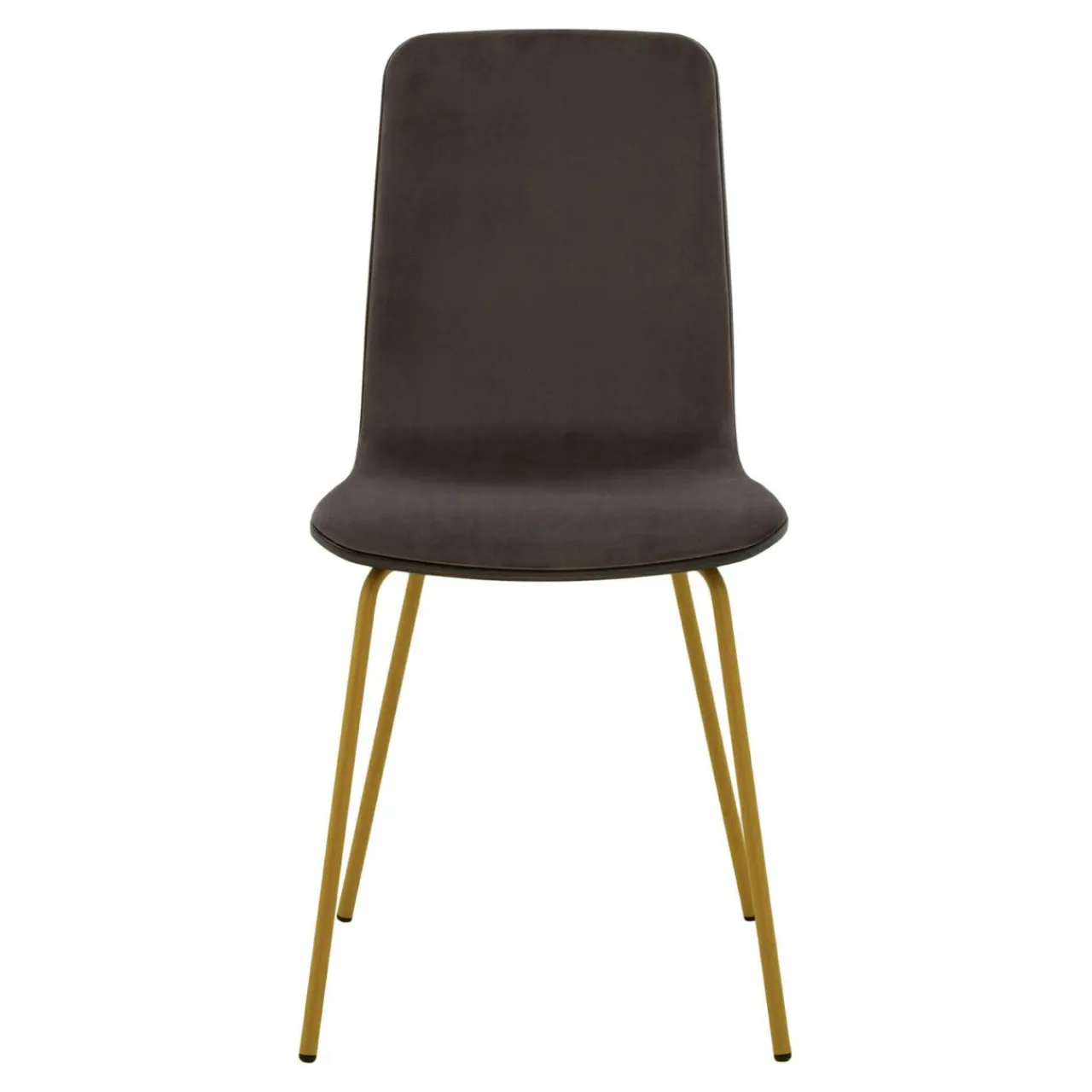 - Krzesło posiada miłą w dotyku welurową tapicerkę w kolorze brązowym.