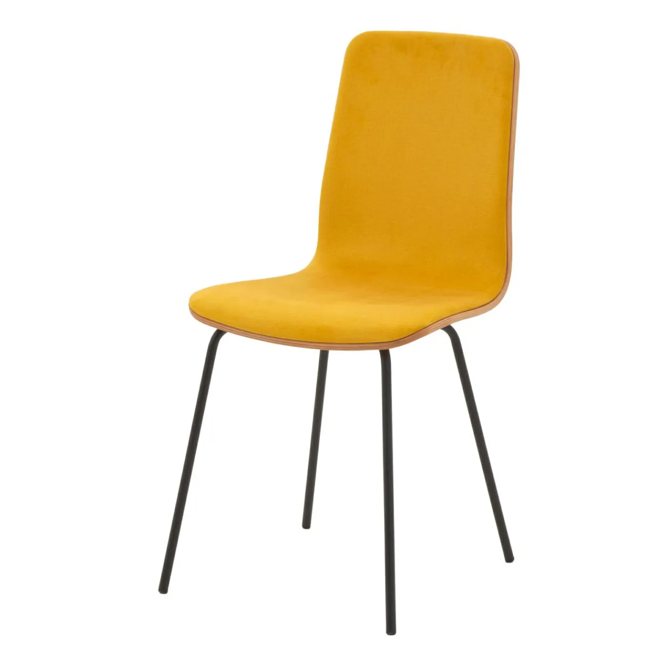 - Krzesło posiada miłą w dotyku welurową tapicerkę w kolorze miodowym.