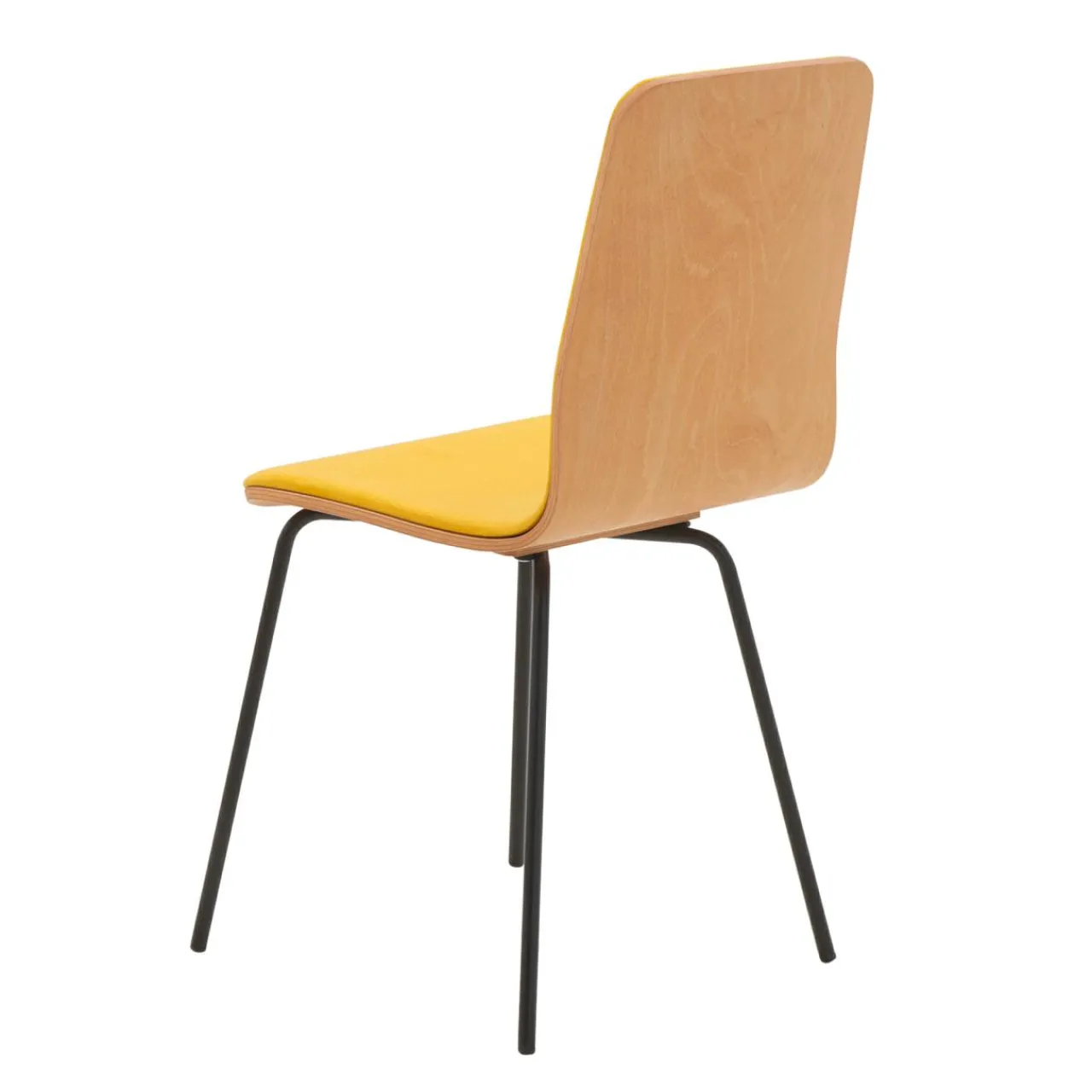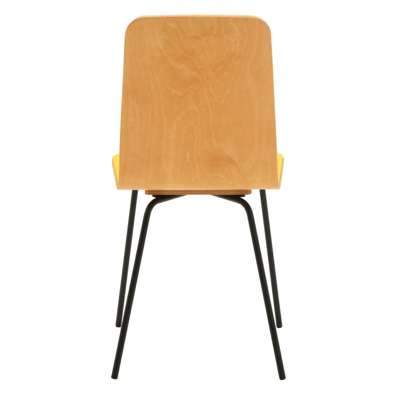 - Siedzisko i oparcie krzesła wykonano ze sklejki w kolorze naturalnego drewna.