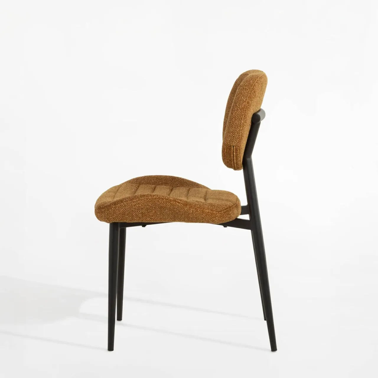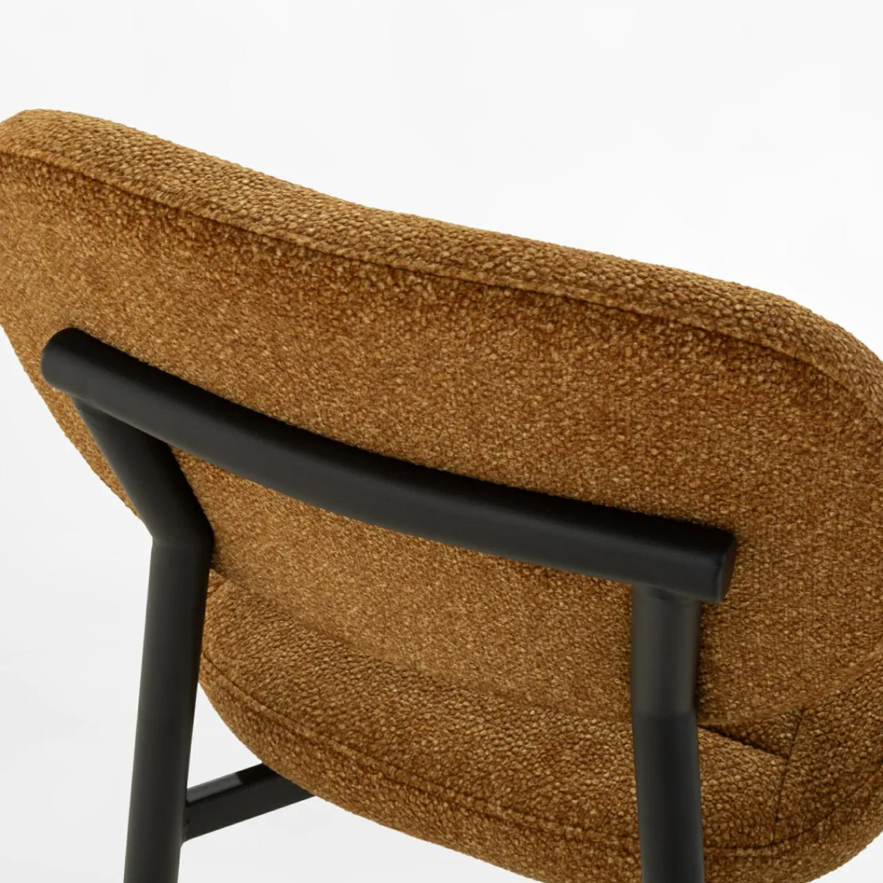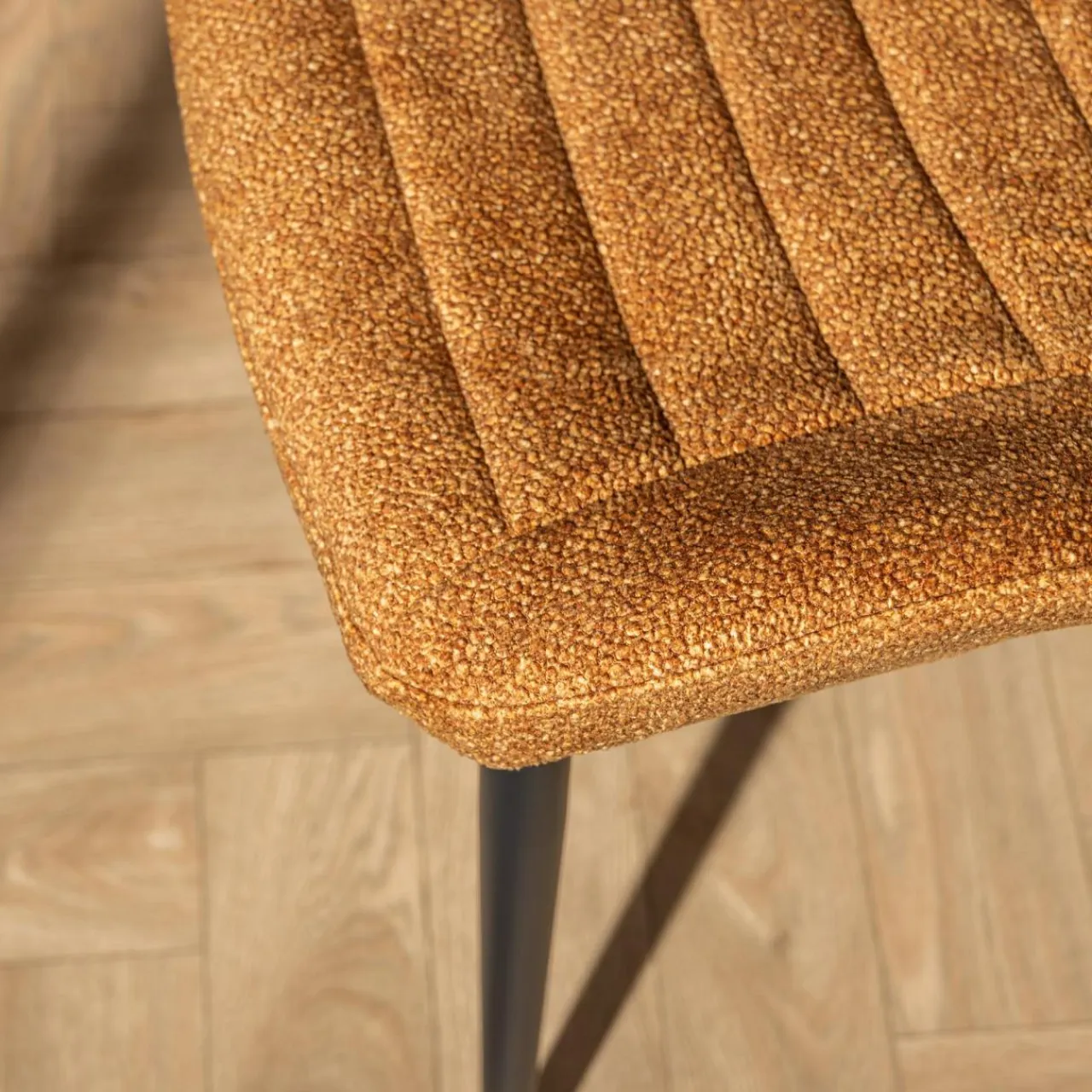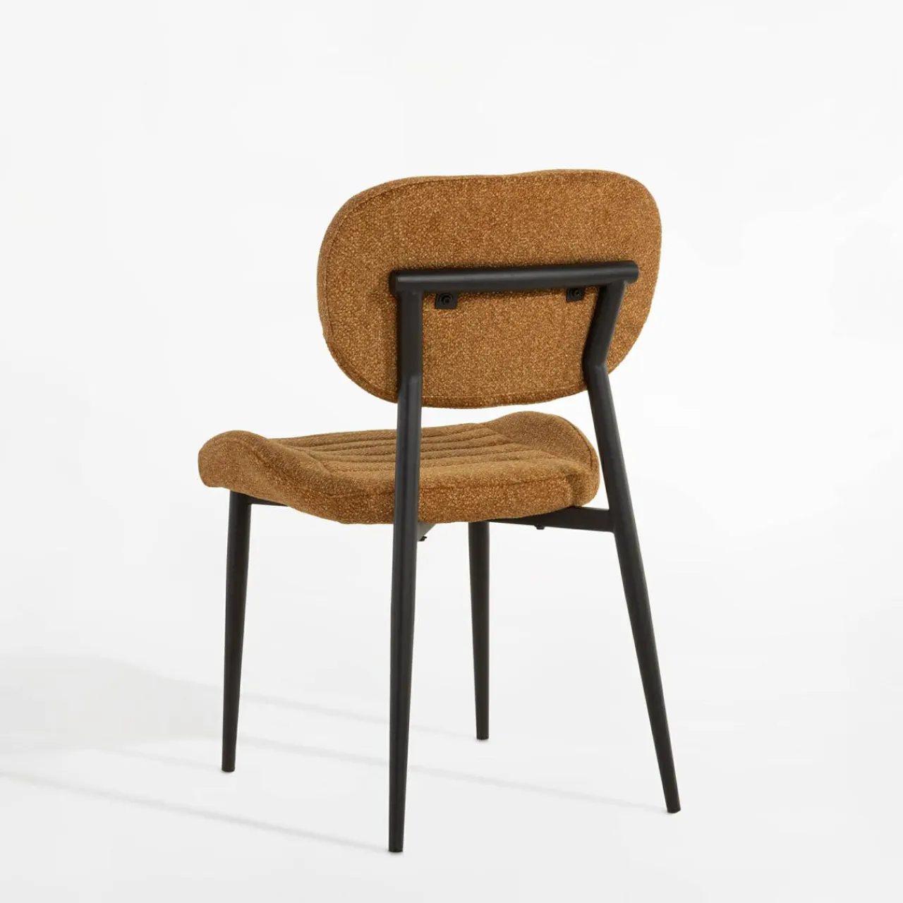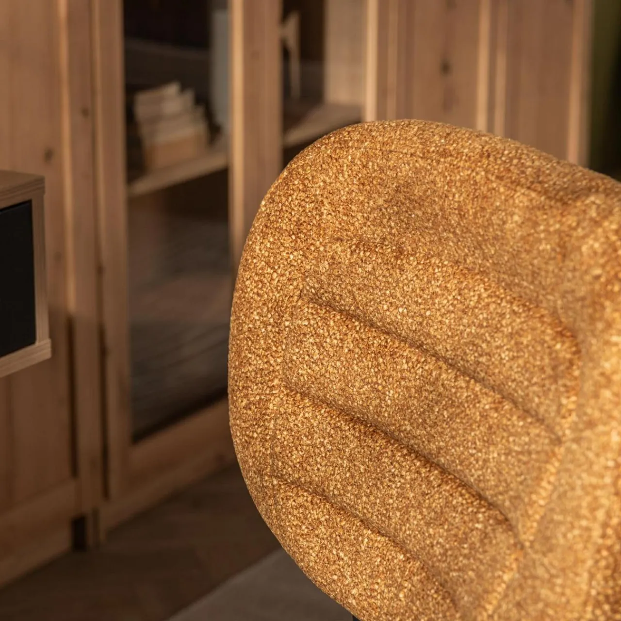 Tapicerka jest strukturalna, wyrazista w dotyku, przepleciona nitkami o kilku odcieniach żółci i beżu, dlatego krzesło FINESETT z pewnością wyróżni się w Twojej jadalni.