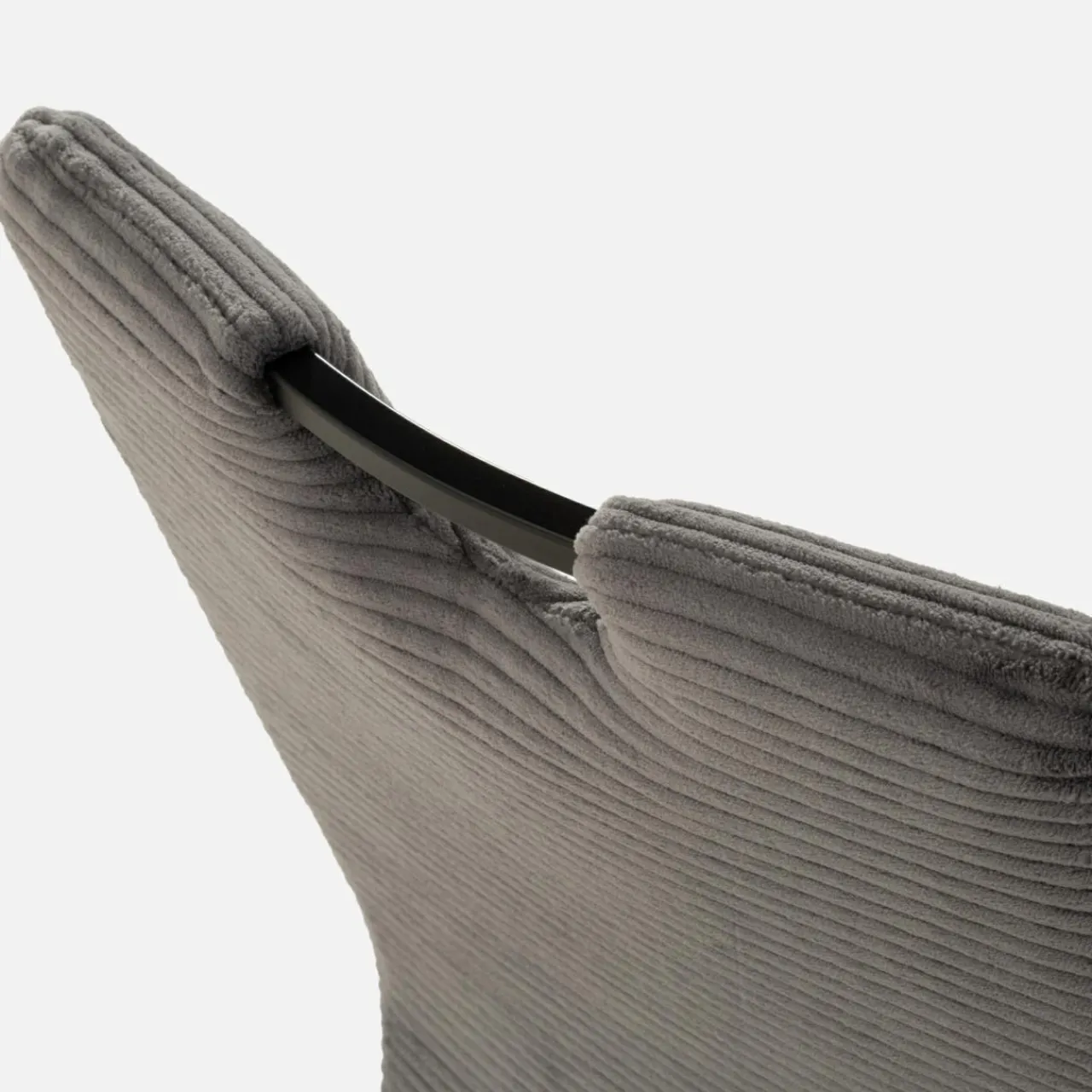 - Szara tkanina wykorzystana do obicia krzesła jest niezwykle delikatna i miękka, oferując wyższy komfort użytkowania.