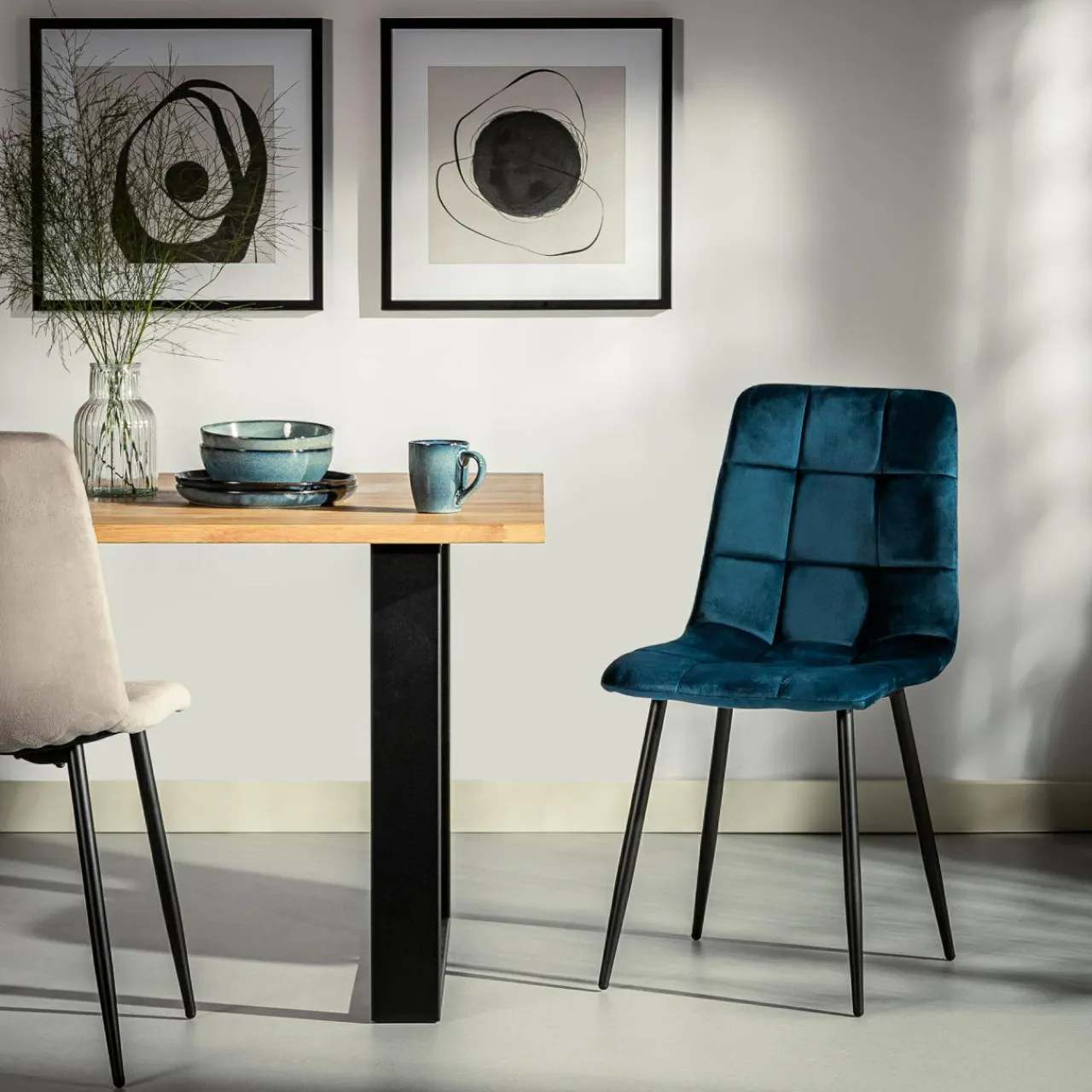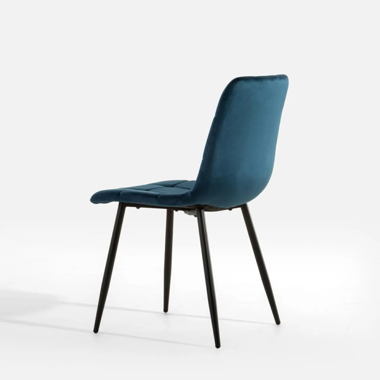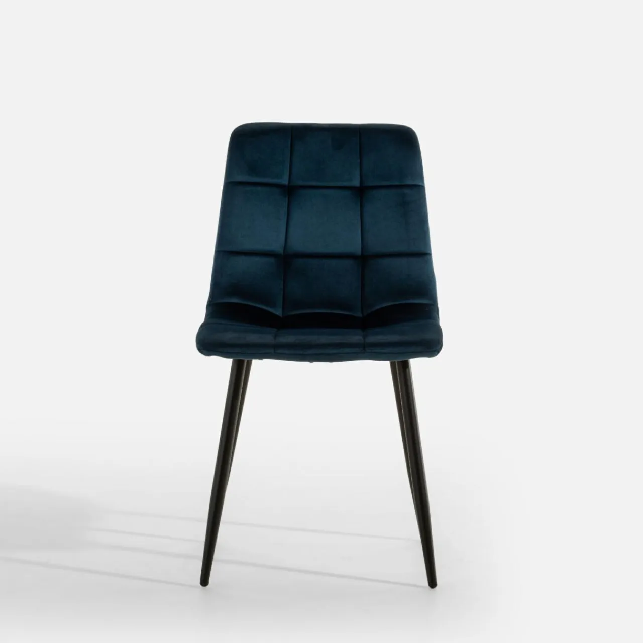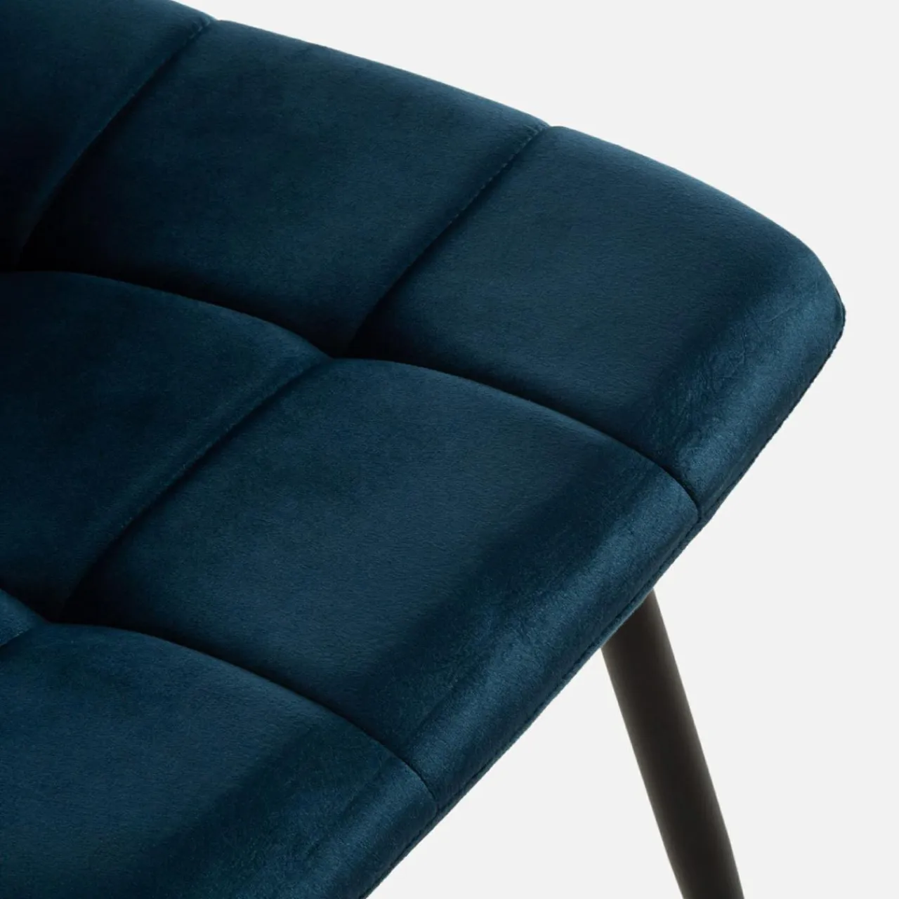 Krzesło JYRANDO wprowadzi do wnętrza nutę nowoczesności. Wykończenie z granatowego miękkiego weluru wygląda stylowo, a geometryczne przeszycia dodadzą jadalni ciekawego akcentu.