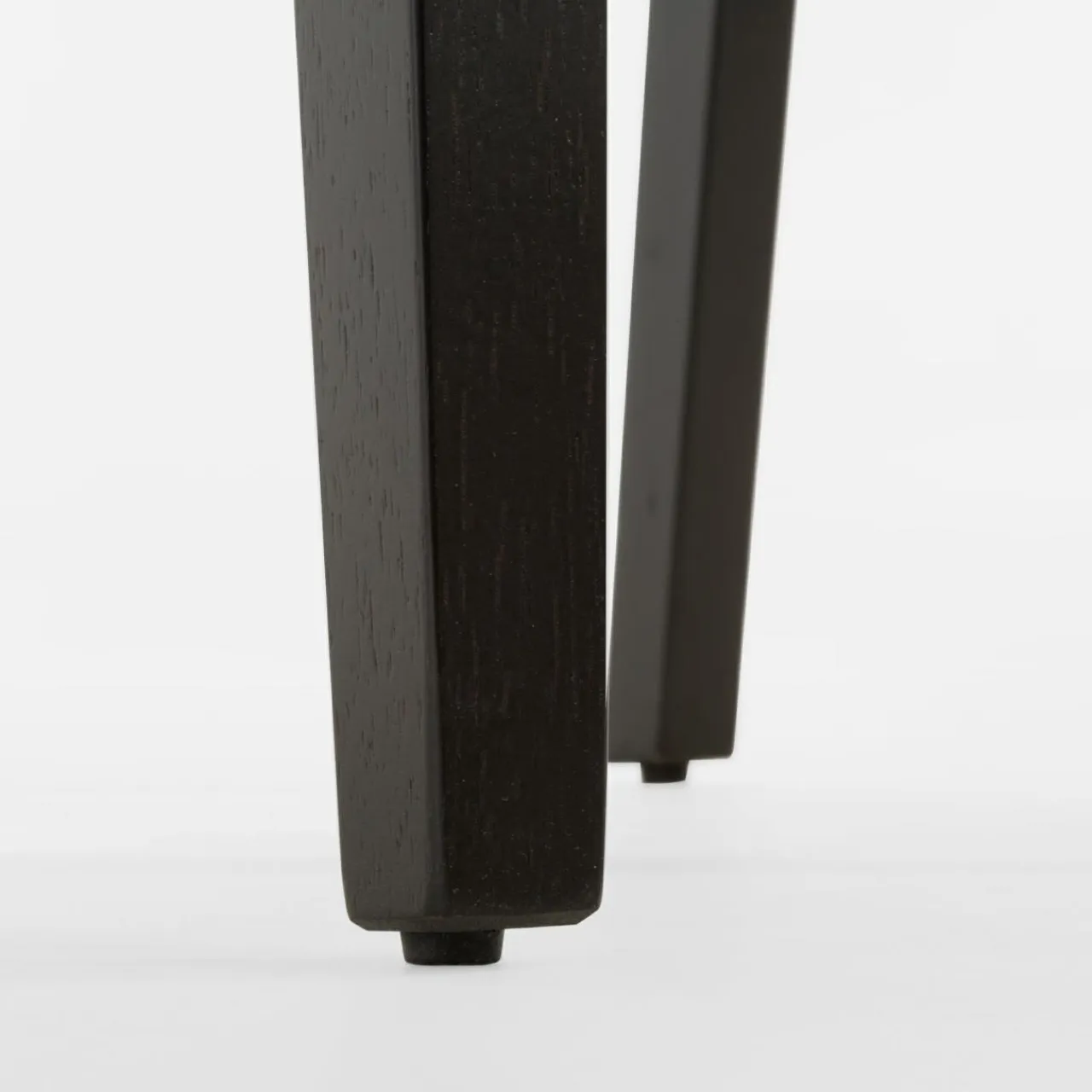 - Krzesło wykonano z litego drewna kauczukowego. Nadano mu barwę ciemnego drewna.