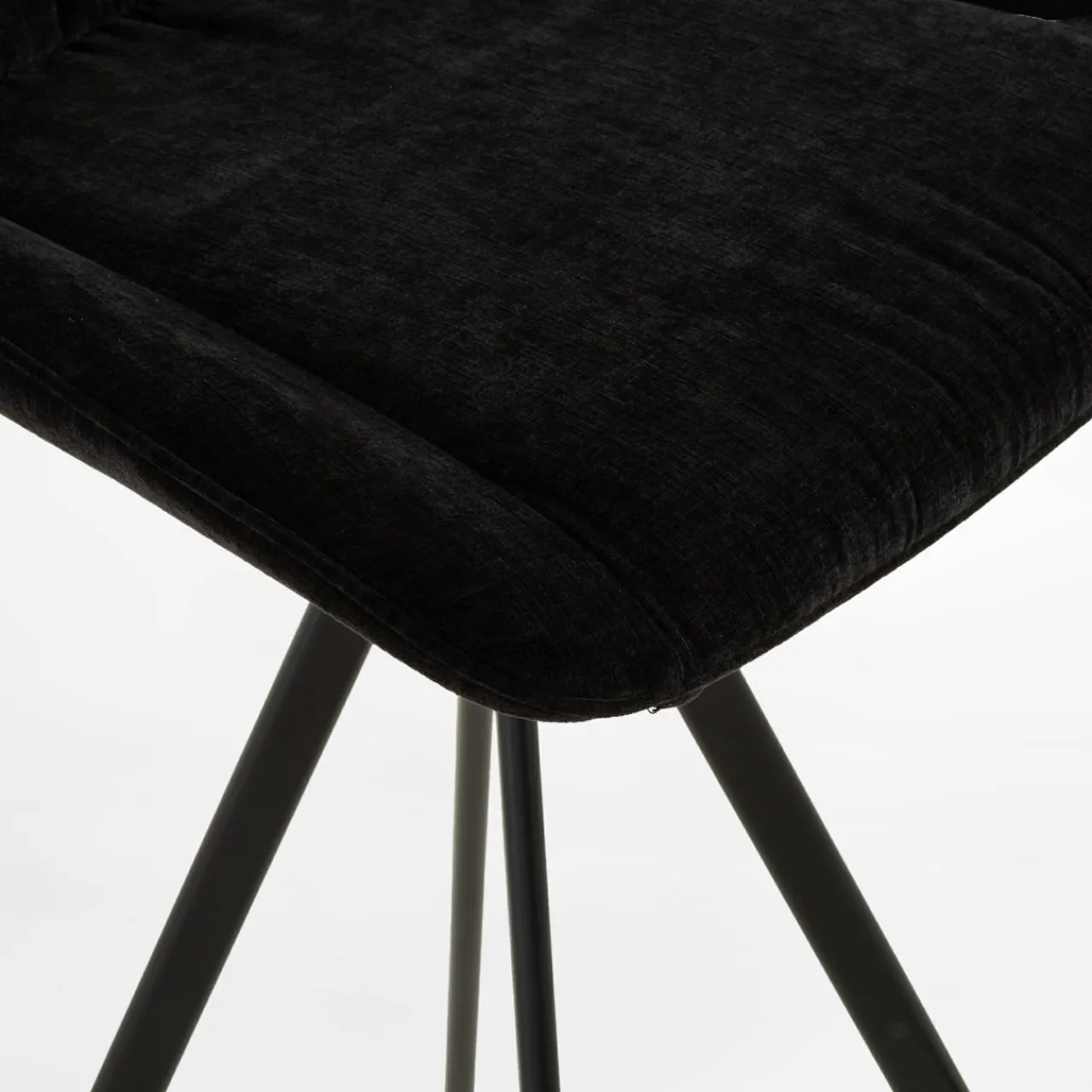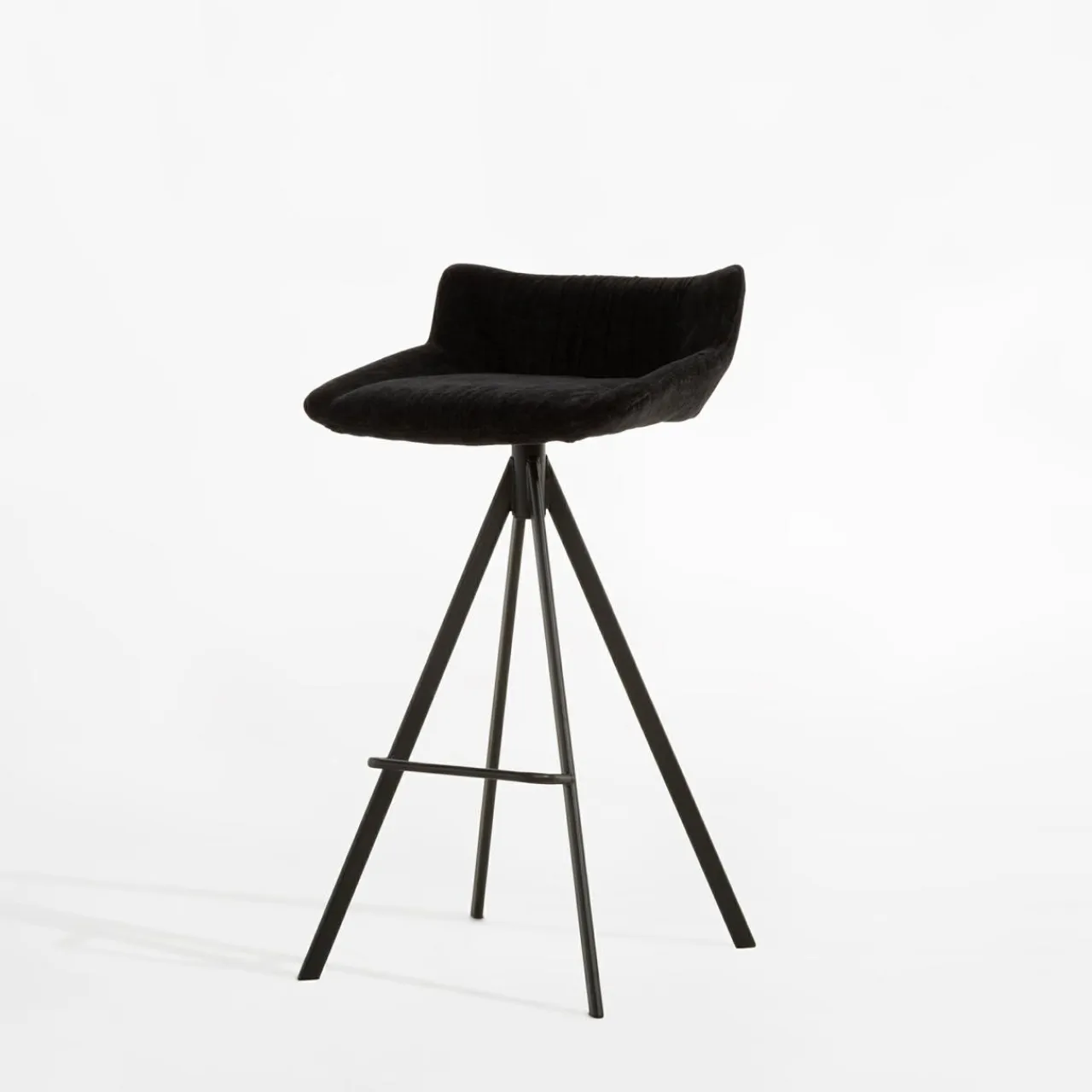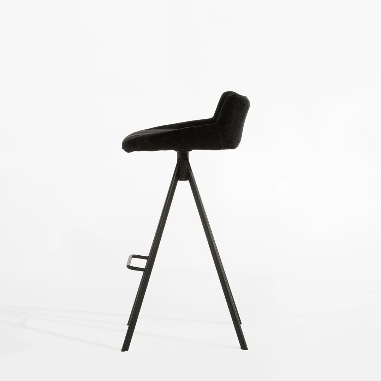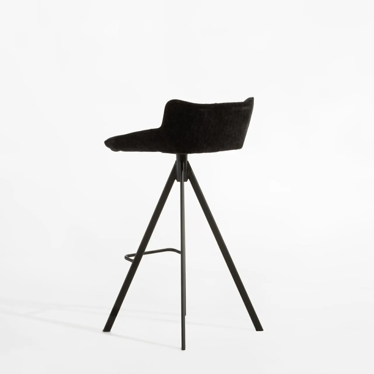 Krzesło barowe FLAIRO wyróżni się w jadalni dzięki ciekawej melanżowej tapicerce w odcieniach czerni.
