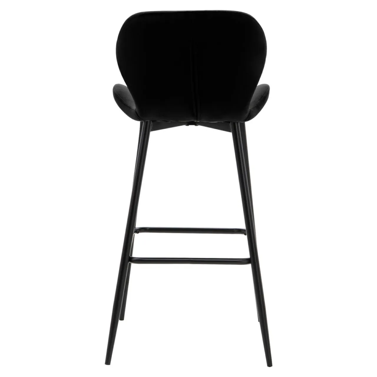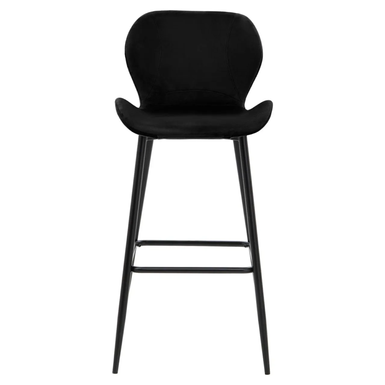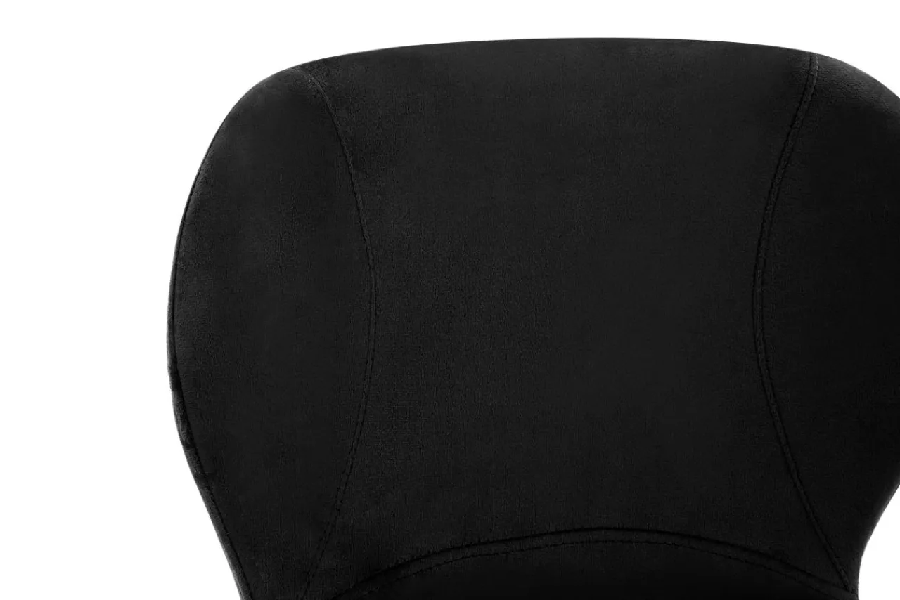 Krzesło obite jest welurem w czarnym kolorze. Materiał pod wpływem dotyku delikatnie zmienia swój odcień.