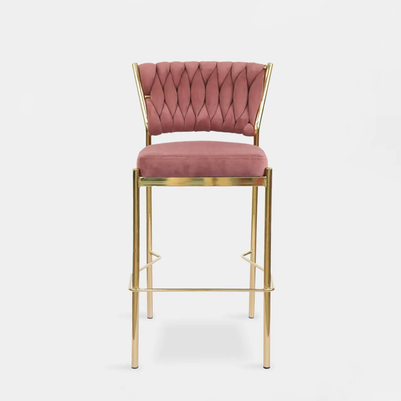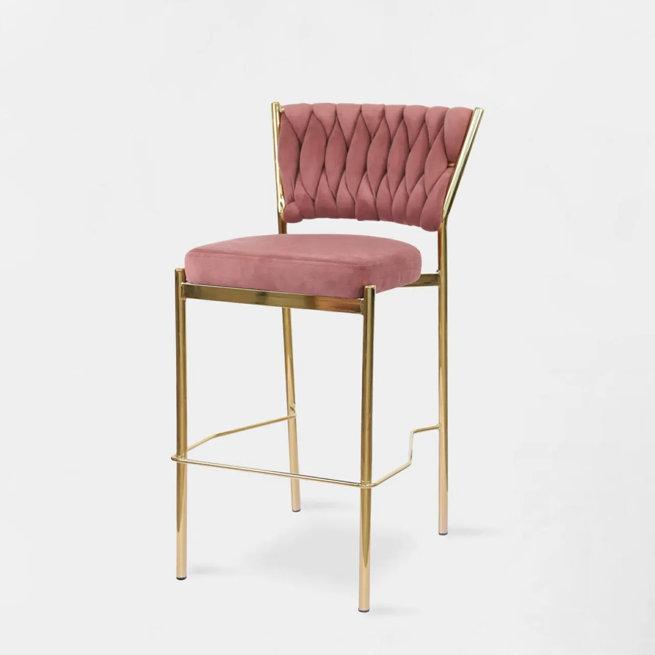 Krzesło barowe z różowym welurem