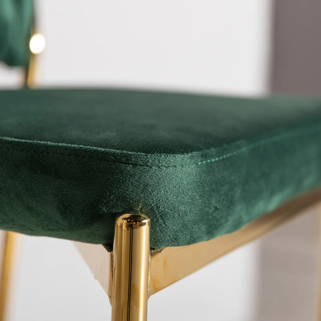 - Krzesło zostało obite miłym w dotyku welurem w kolorze głębokiej, butelkowej zieleni, która będzie prezentować się niezwykle elegancko w Twoim wnętrzu.