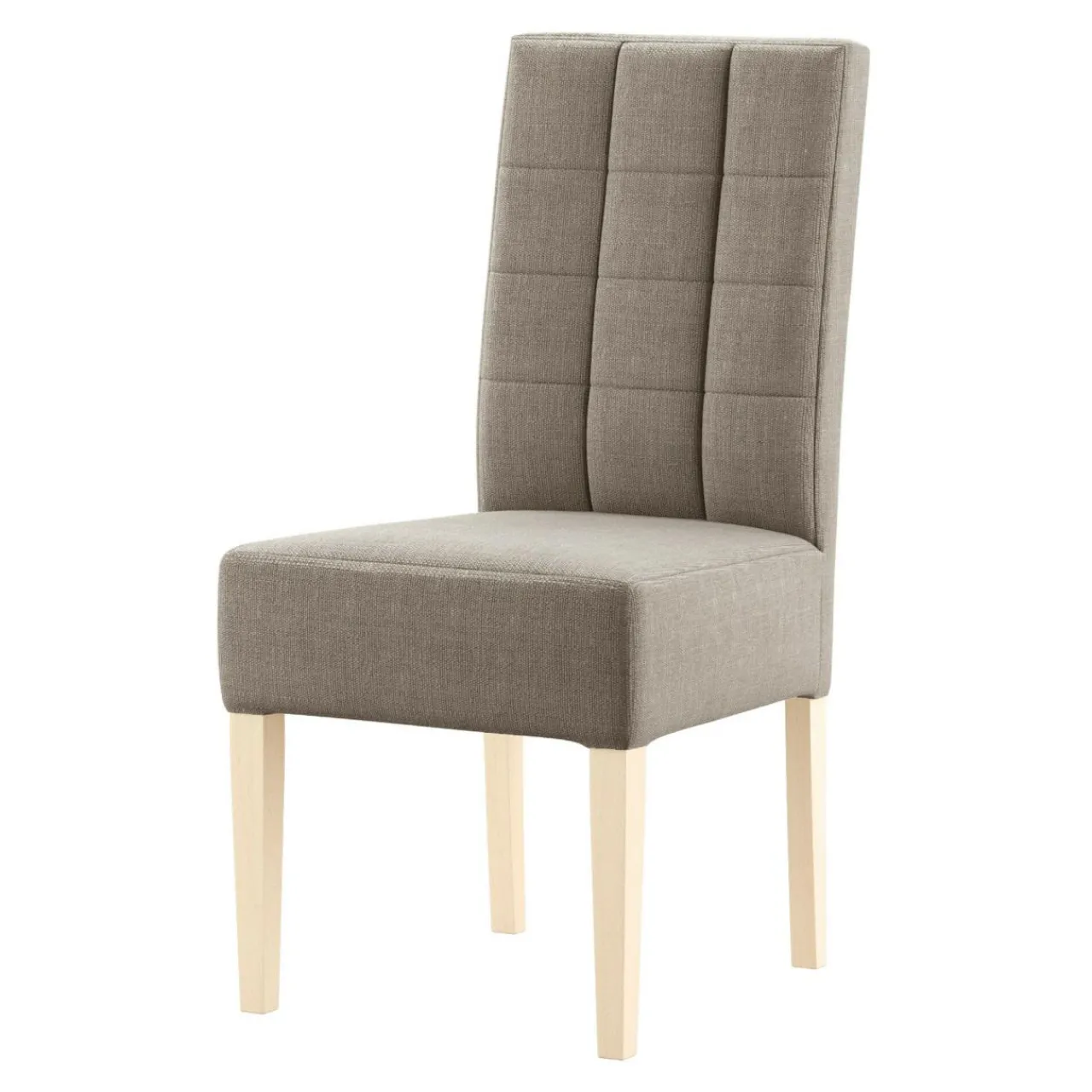 Doskonale prezentuje się w przestronnych wnętrzach jadalni oraz salonu. Dzięki nogom wykonanym z drewna bukowego wnosi naturalny wpływ w wystrój wnętrza. Tapicerowane tkaniną w ciepłym, szarym odcieniu może też być doskonałym dodatkiem dla wypełnionych światłem wnętrz skandynawskich.