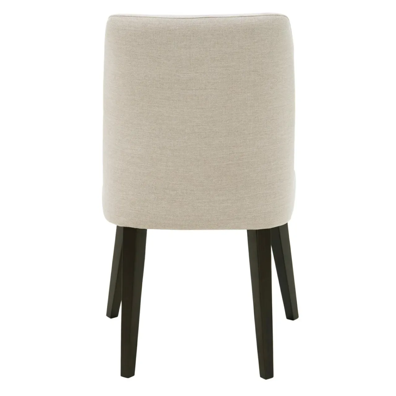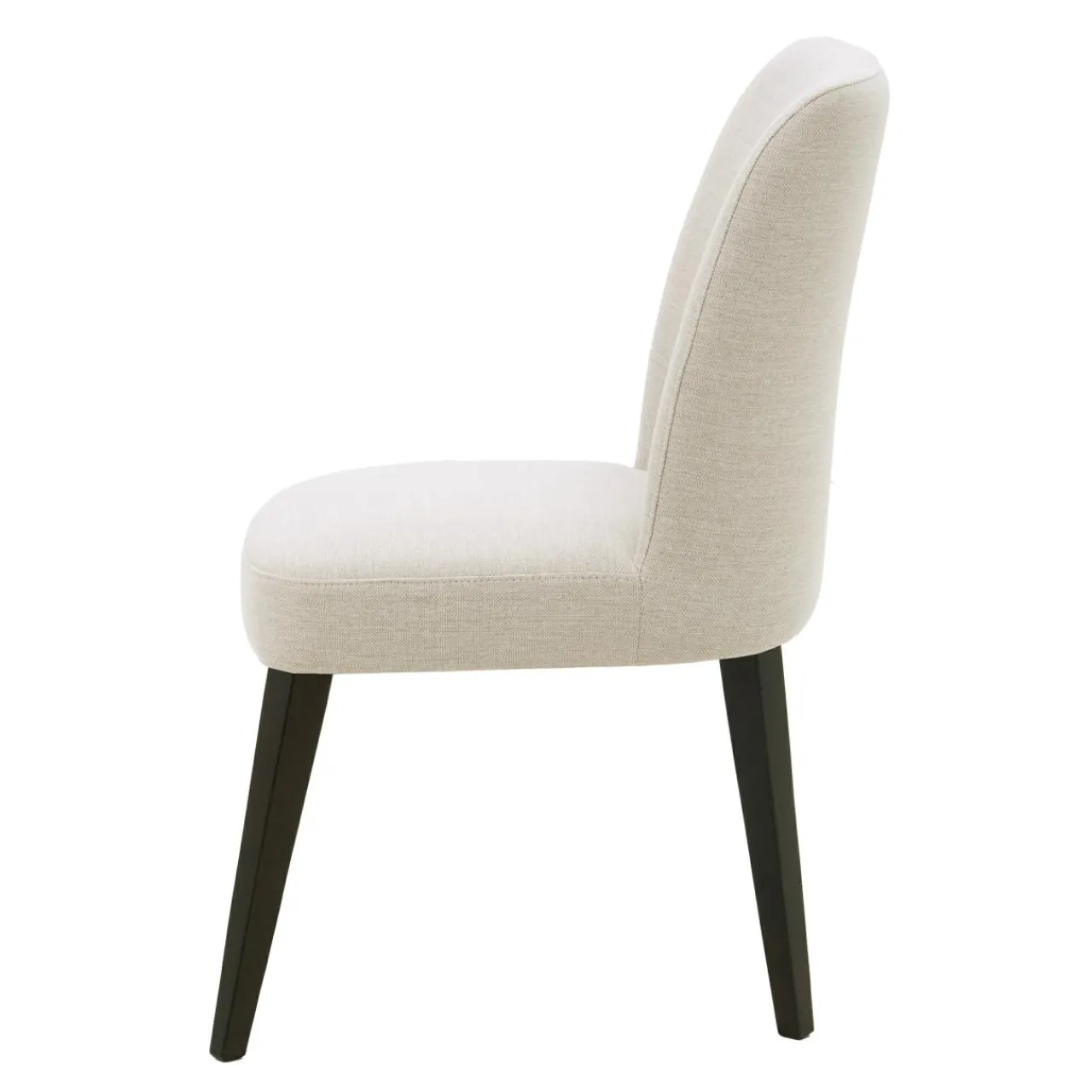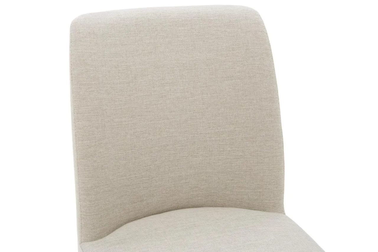 Krzesło HOLIN wykończone jest w jasnej, beżowej tkaninie. Wyraźna plecionka jest przyjemna pod palcami. Mimo wyraźnych pleceń materiał jest delikatny i nie drażni skóry podczas użytkowania.