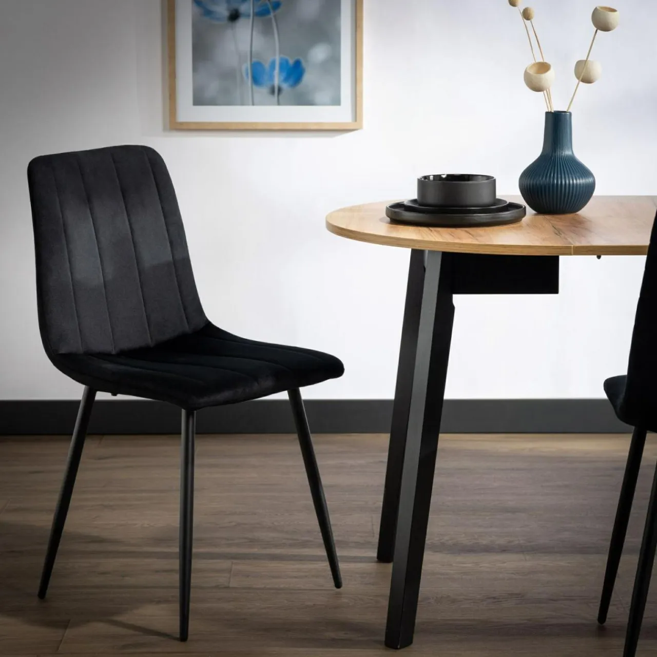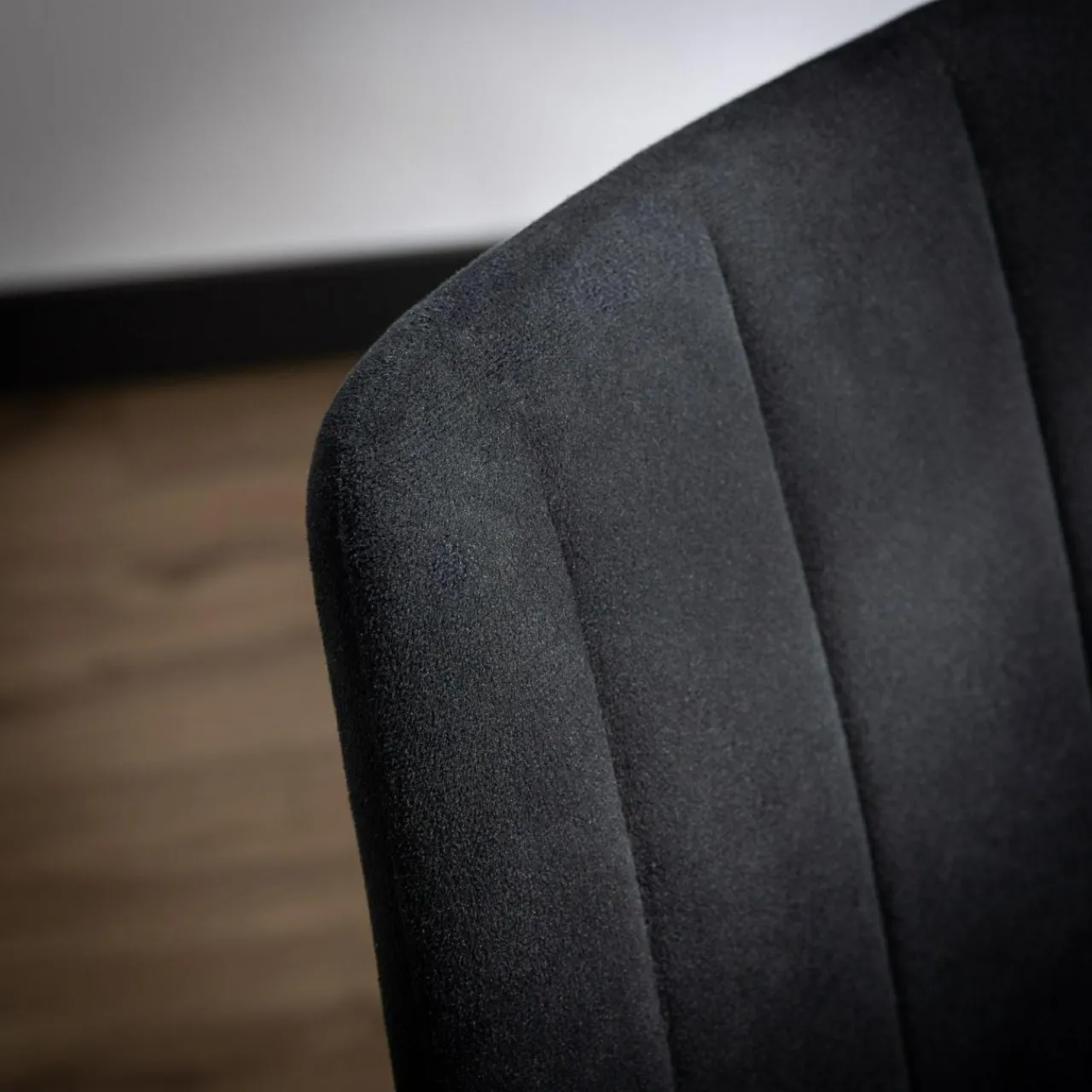 - Czarny kolor tapicerki krzesła uzupełni aranżację wnętrza, w której główną rolę odgrywać będą eleganckie barwy.