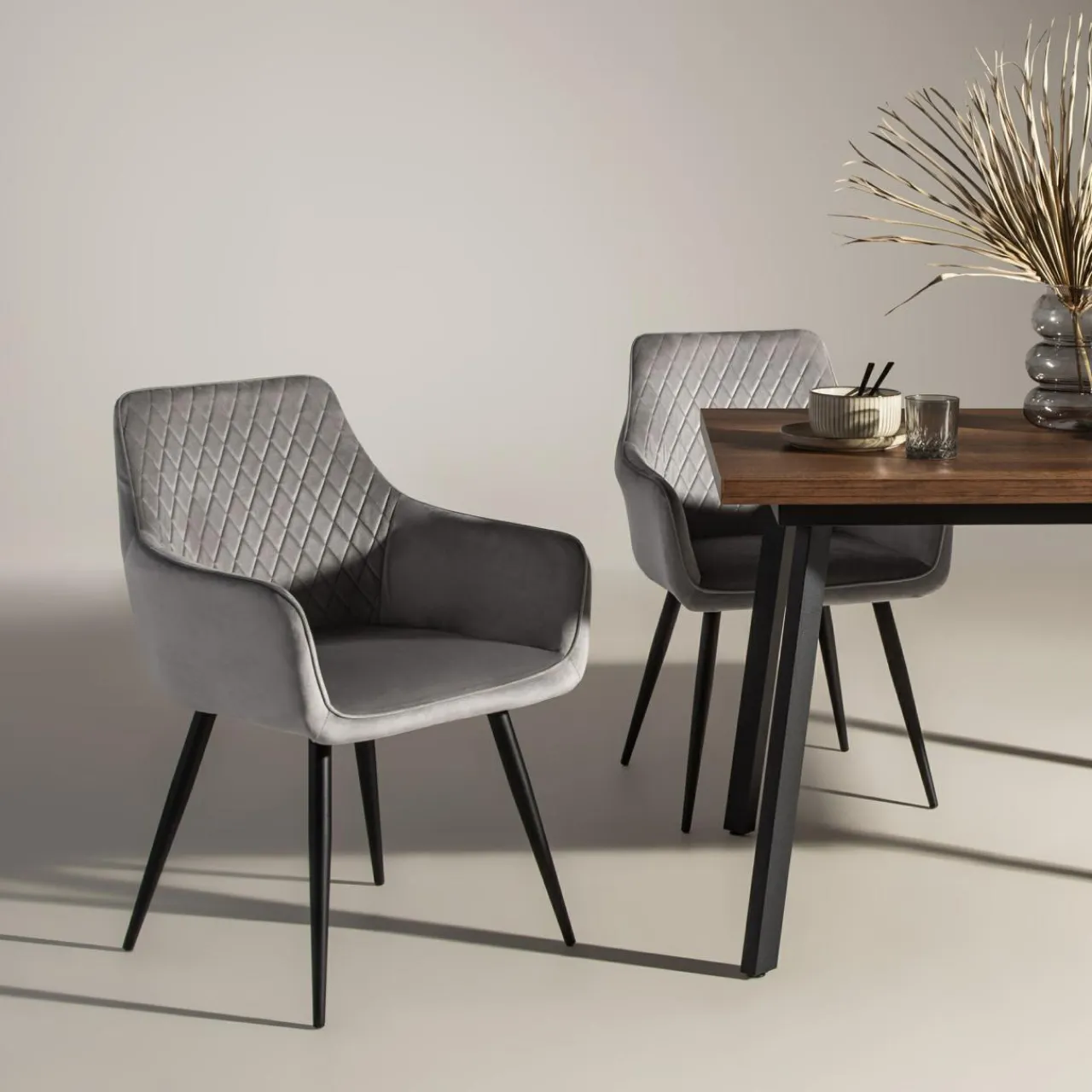 Zdecyduj się na welurowe krzesło ACURO II do jadalni i ciesz się eleganckim meblem w jadalni. Krzesło z podłokietnikami zadba o prawidłową postawę ciała podczas długich spotkań.
