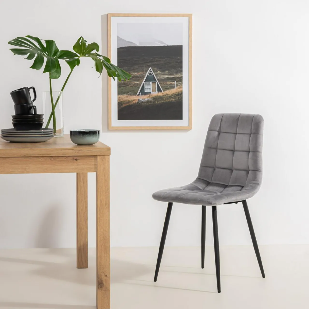 - Szary kolor tapicerki krzesła ABADA uzupełni aranżację wnętrza, w której główną rolę odgrywać będą eleganckie, stonowane barwy.