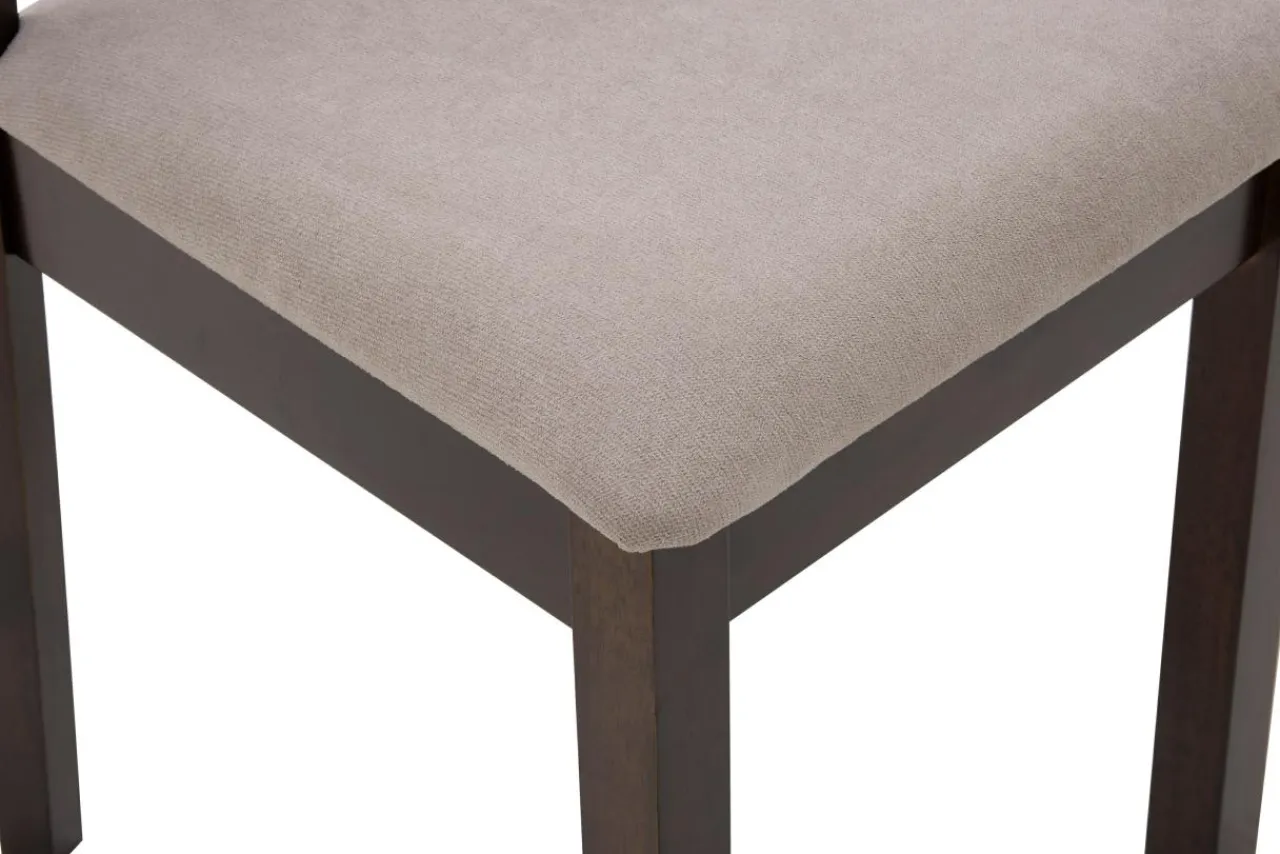 - Materiał użyty do wykonania krzesła to lite drewno kauczukowe. Wybarwiono je na ciemny kolor (wenge), który dodaje meblowi klasy i charakteru.
