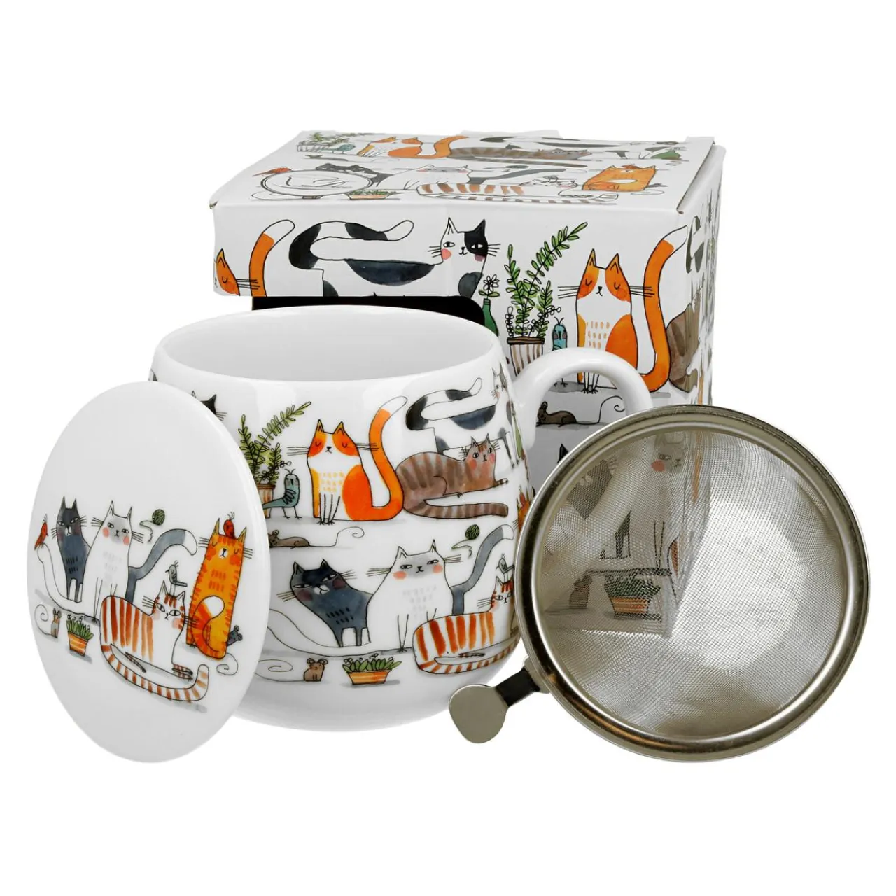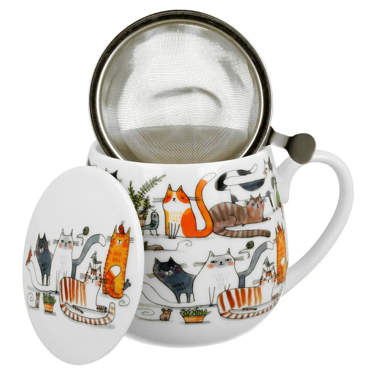 Kubek baryłka z zaparzaczem KOCI ŚWIAT LENIWE KOTY 430 ml