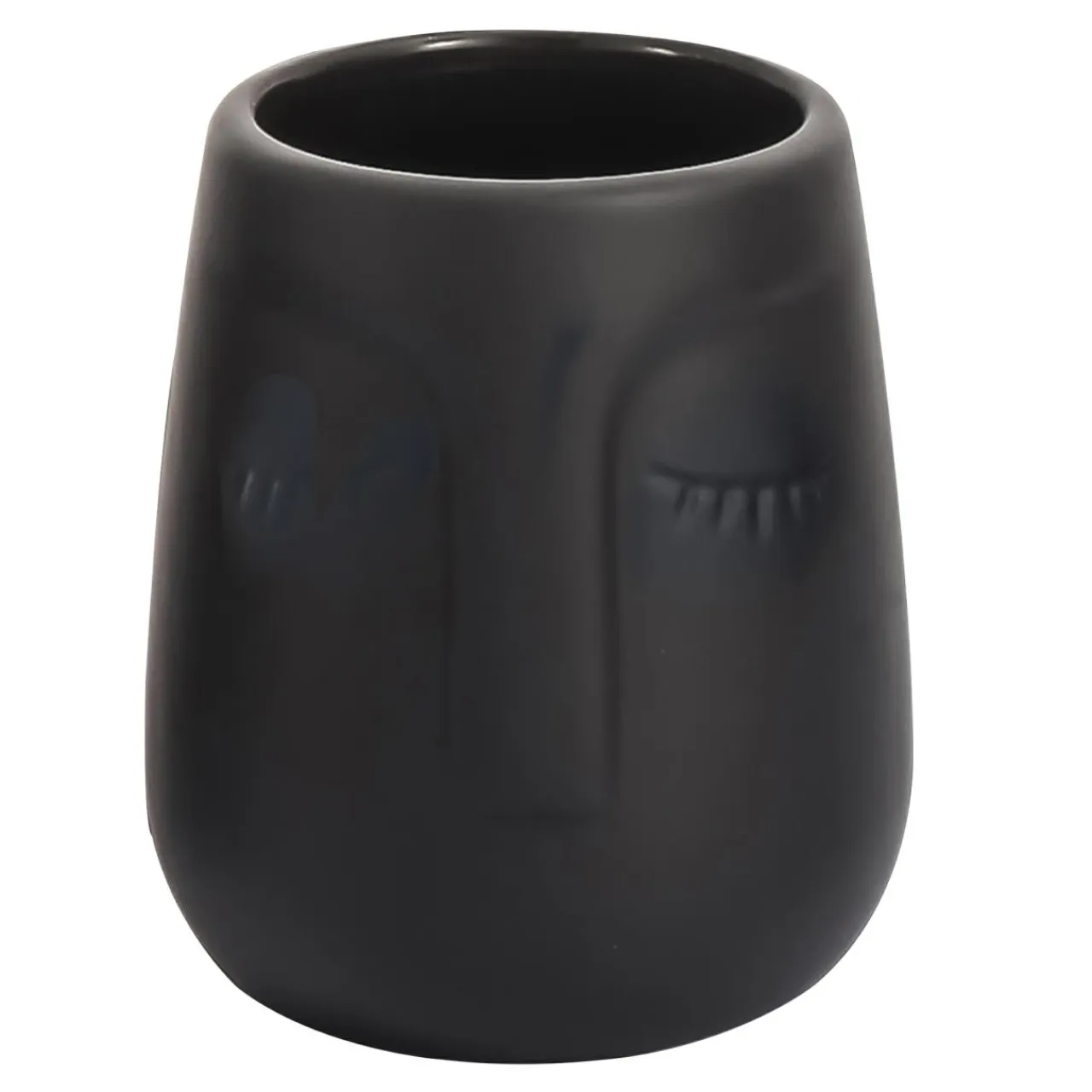 Kubek łazienkowy z twarzą na szczoteczki czarny 10 cm