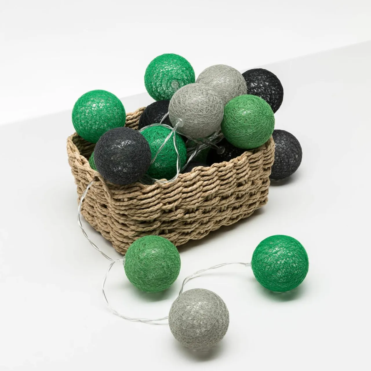 - Zestaw 20 kul LED z tworzywa sztucznego są oplecione z zewnątrz bawełnianym materiałem. Są przyjemne w dotyku.