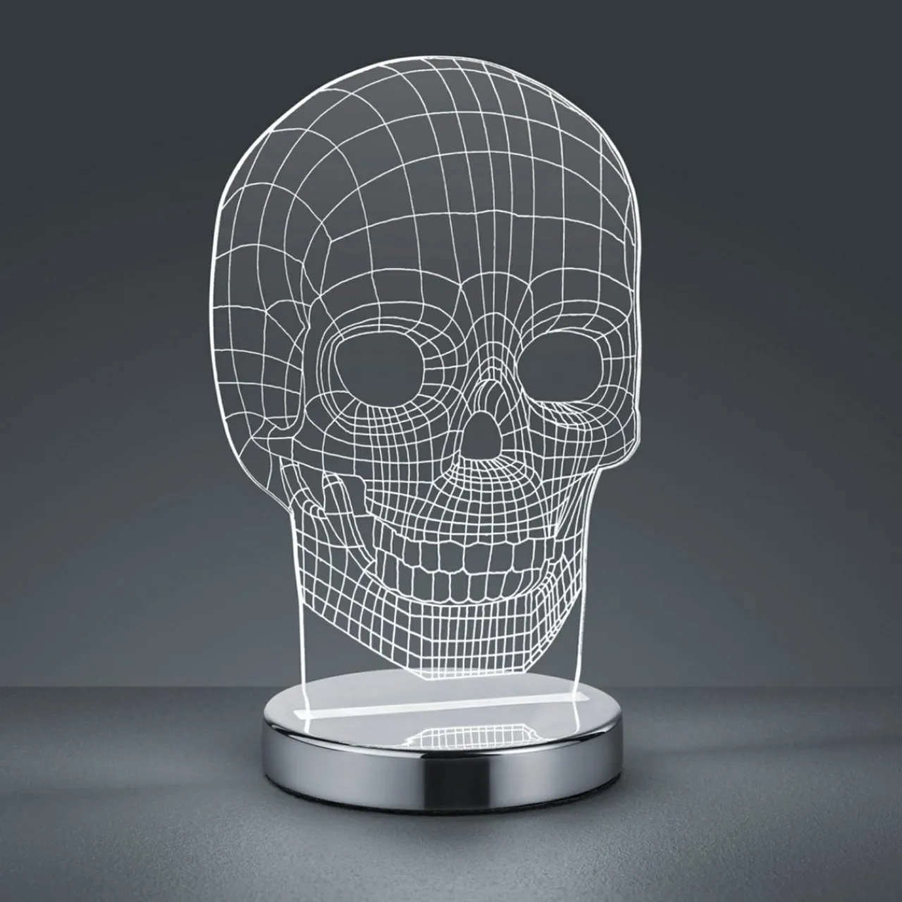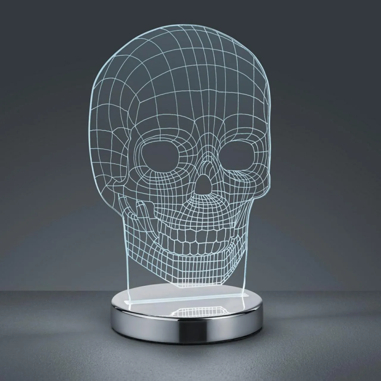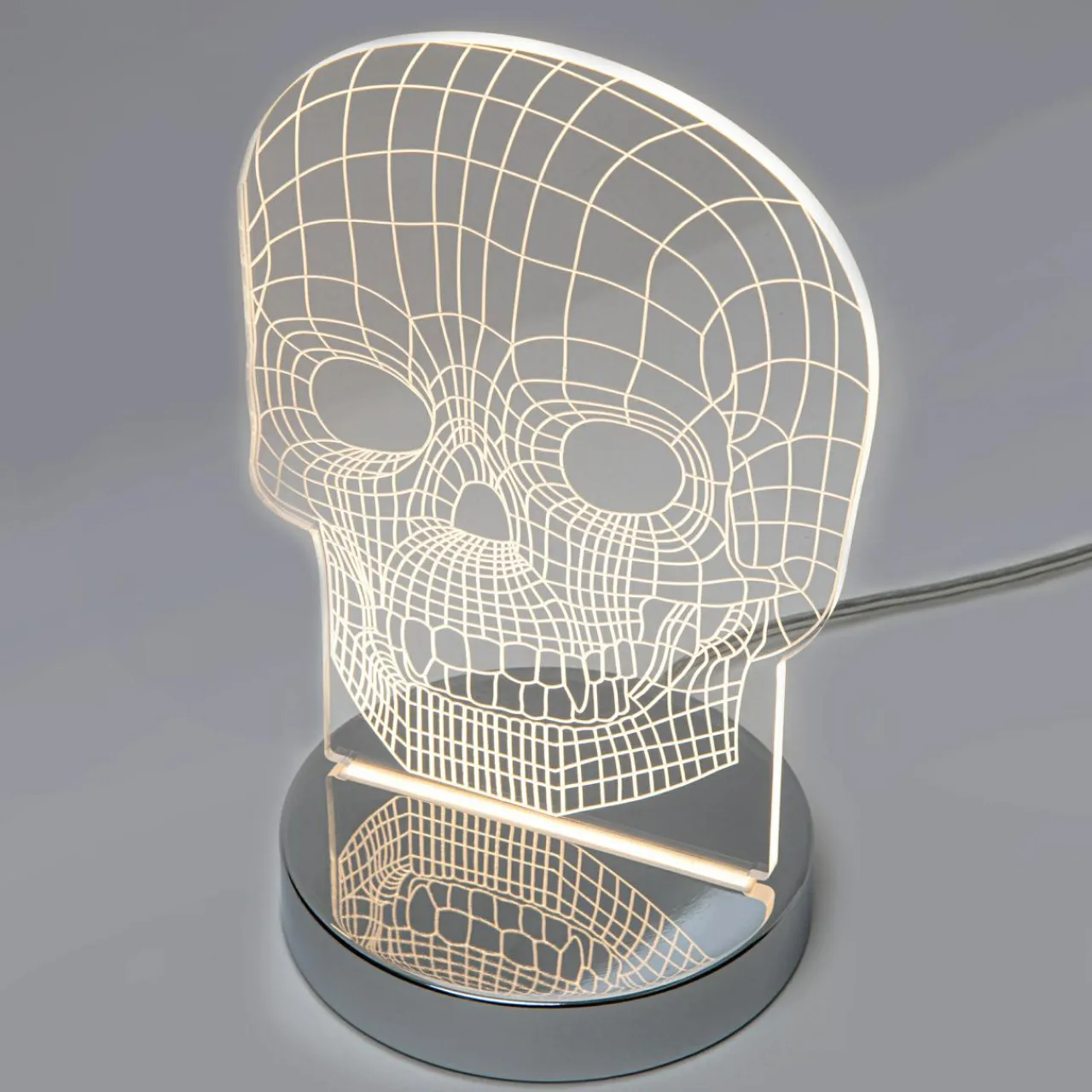 - Lampa SKULL została wykonana ze tworzywa, w które zostało wkomponowane oświetlenie LED.