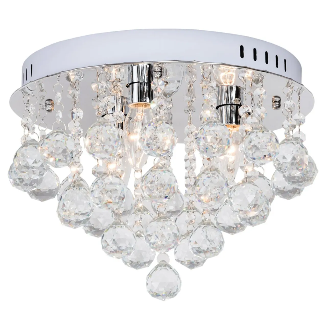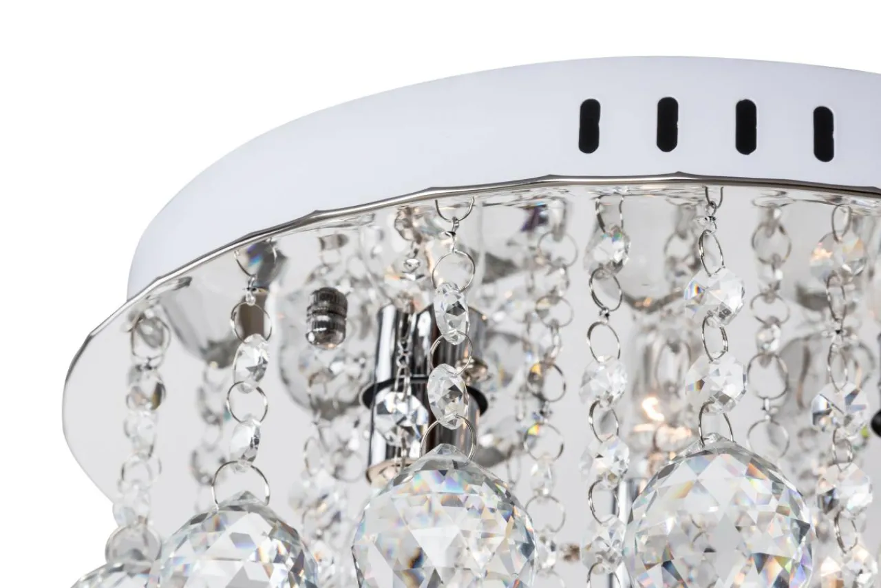 Lampa doskonale prezentuje się w pomieszczeniach zaaranżowanych w jasnej tonacji kolorystycznej oraz doskonale współgra ze szklanymi i chromowanymi meblami i dodatkami dekoracyjnymi. Dzięki oryginalnemu wykończeniu przyciąga wzrok, zapalona rozjaśnia pomieszczenie oraz uatrakcyjnia jego wygląd tworząc na ścianach świetlne refleksy.