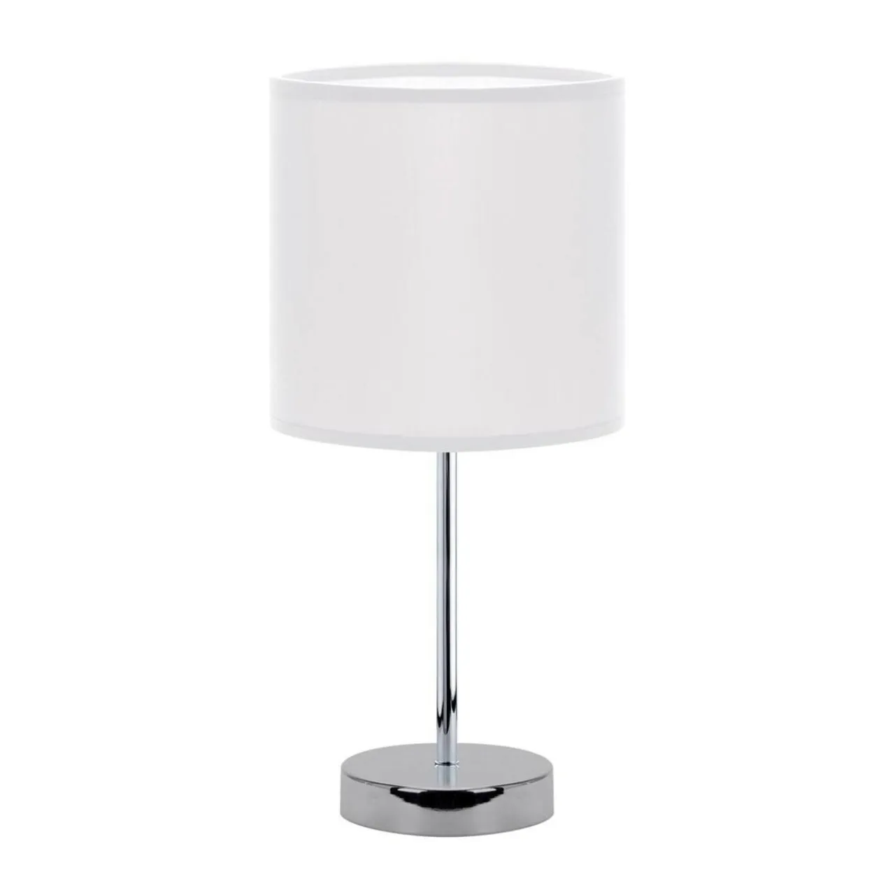 Prosta i smukła metalowa podstawa ze stali nierdzewnej ładne uzupełnia jasna tonację kolorystyczną pomieszczenia. Na osobną uwagę zasługuje abażur z tkaniny wzmocnionej tworzywem w białym kolorze. Prosty kształt walca stanowi doskonałe zwieńczenie lampy oraz neutralne tło dla ozdób i dodatków aranżacyjnych.