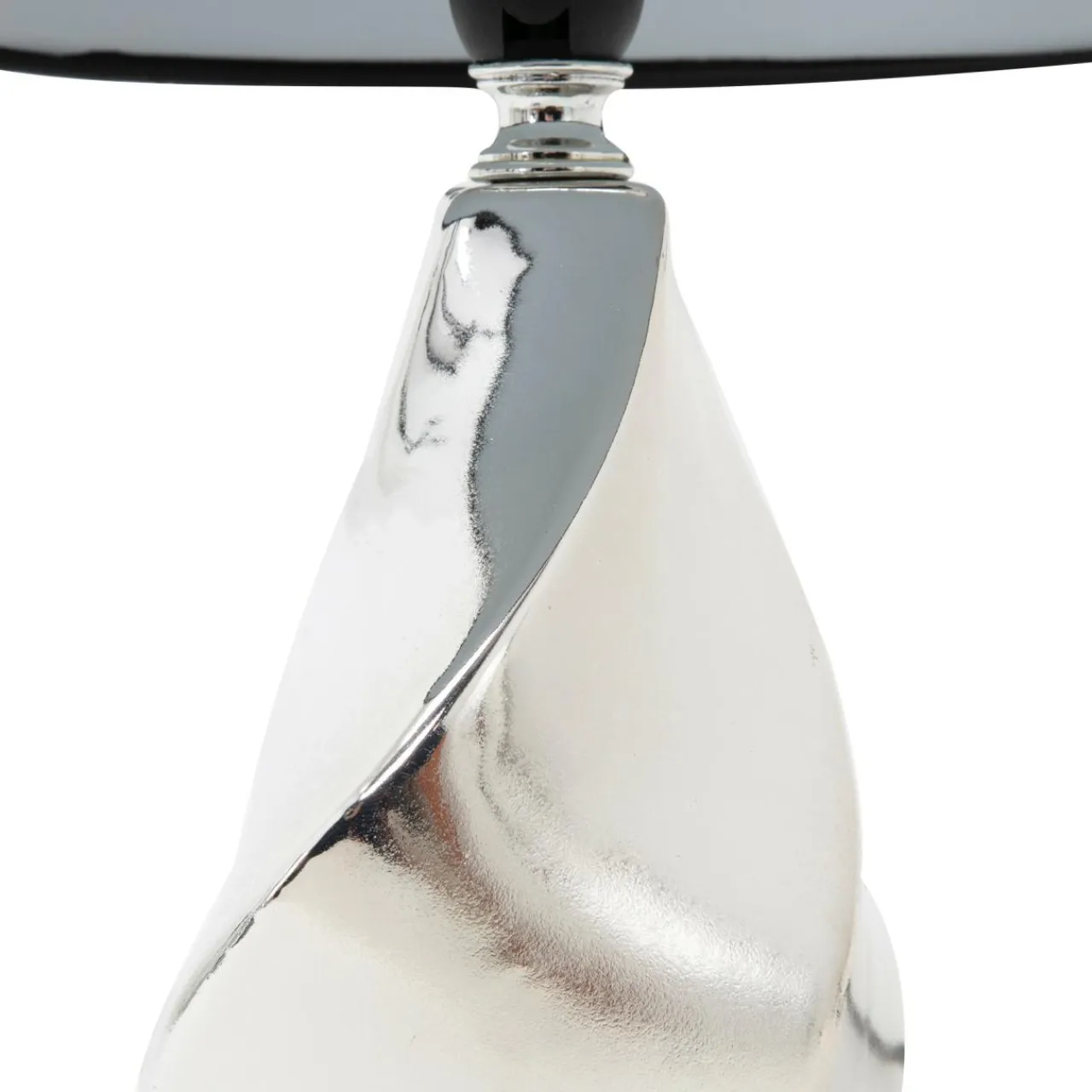 Jej srebrną podstawę w kształcie kropli uzupełnia czarny abażur. Jej unikalny wzór idealnie dopełni wnętrz nowoczesnych o chłodnej tonacji.