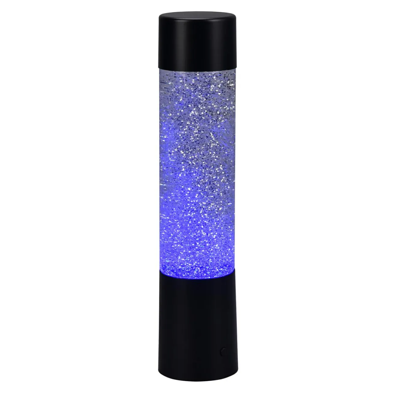 - Transparentny środek wypełniony jest cieczą, która po włączeniu lampy rozprasza się w setki świecących punkcików, które przypominają przesuwający się piasek.