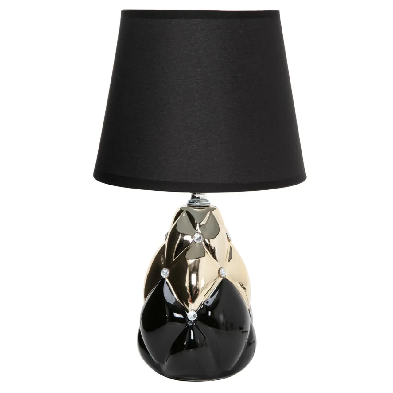 Niniejszy model jest w czarno-złotym kolorze z dodatkiem srebrnych cekinów. Ozdobna ceramiczna podstawa z efektem połysku przyciąga wzrok i urozmaici wystrój, nadając mu nieco pierwiastków glamour.