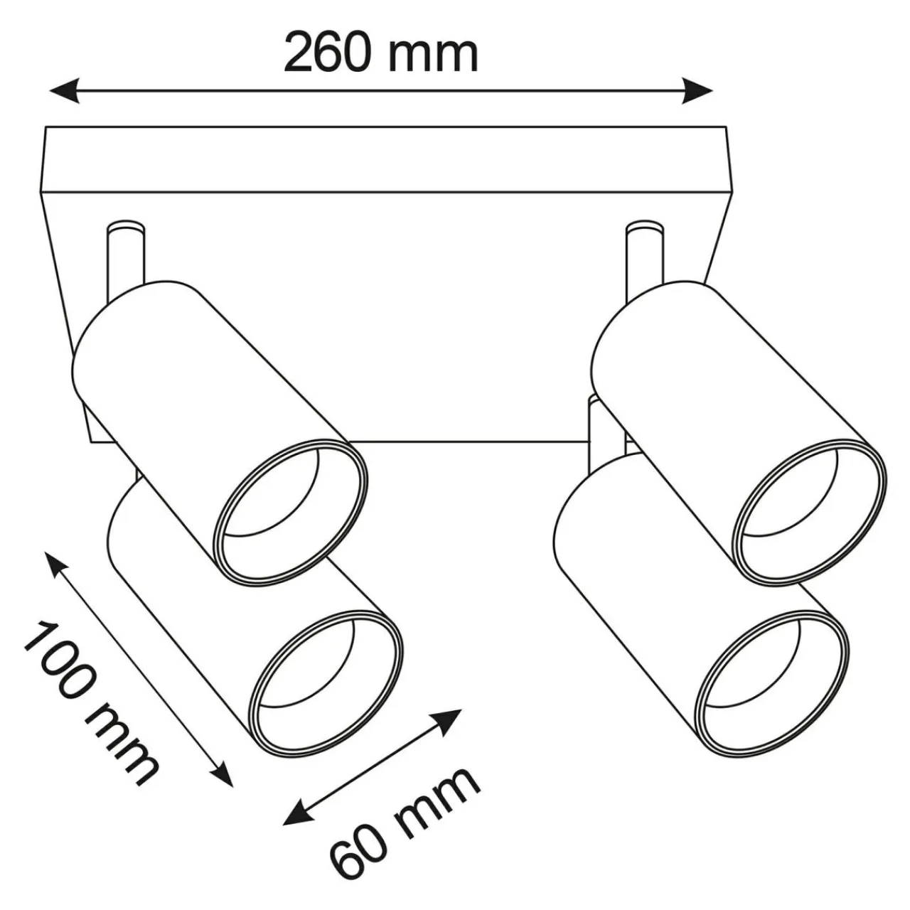 Lampa sufitowa 4-punktowa MARIBEL posiada oprawę przeznaczoną dla żarówek typu GU10 o mocy maksymalnej 10W.
