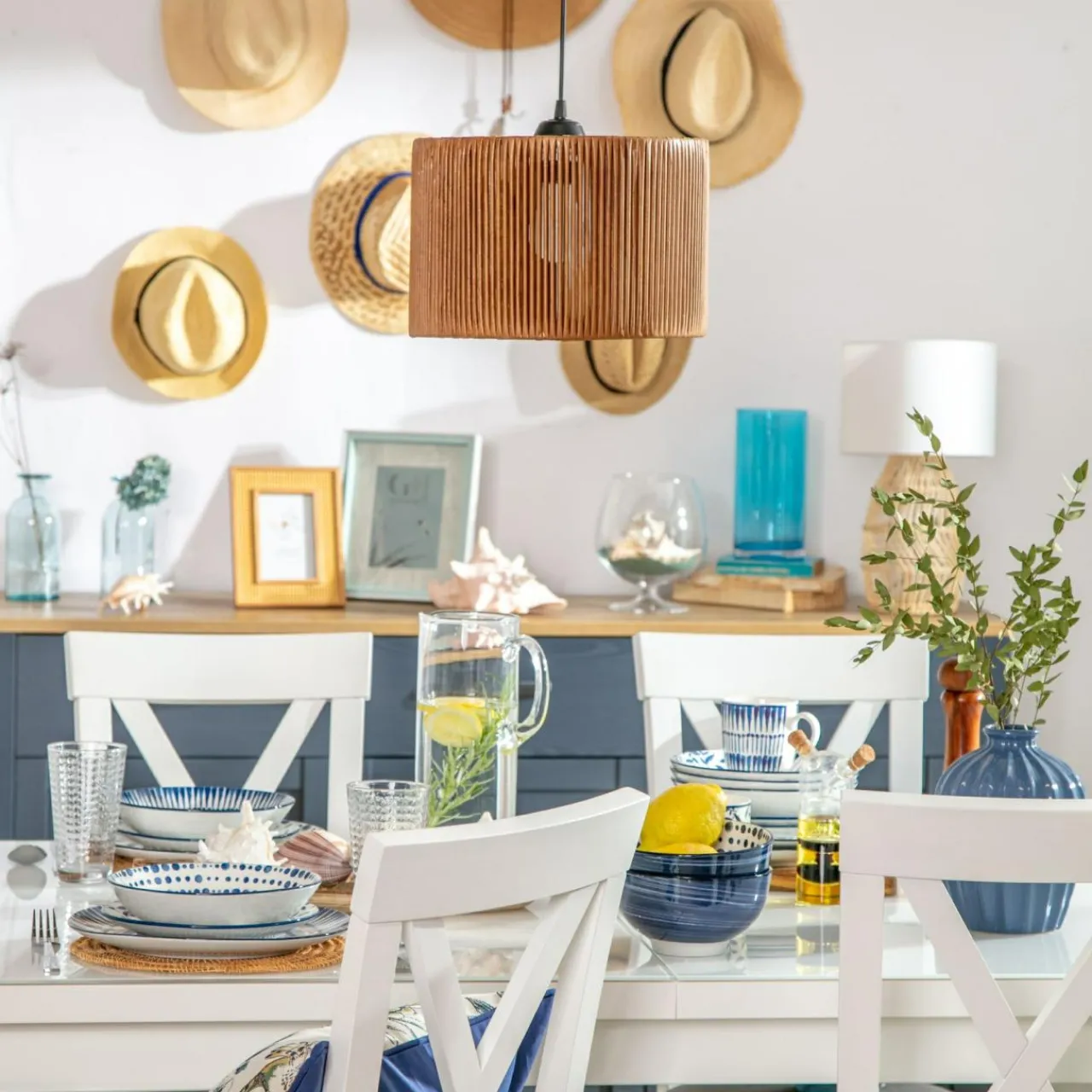 Lampa wisząca ROYA to doskonałe dopełnienie dla wnętrz wypełnionych wiklinowymi meblami oraz dodatkami w brązach, żółciach i zieleniach.