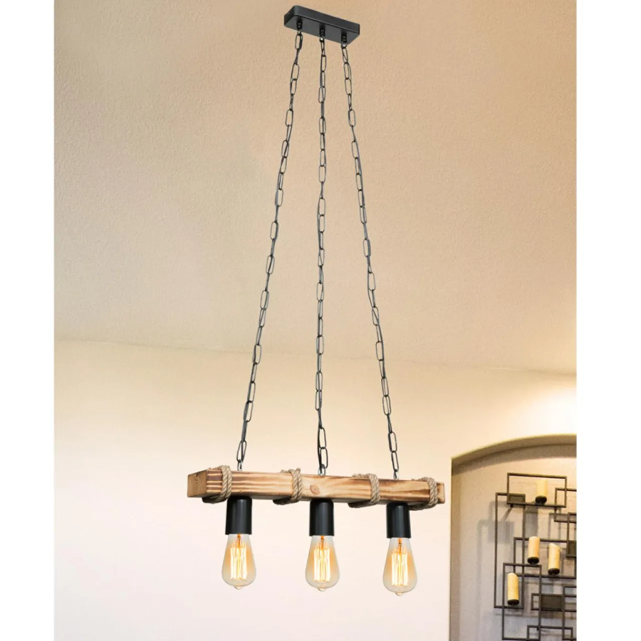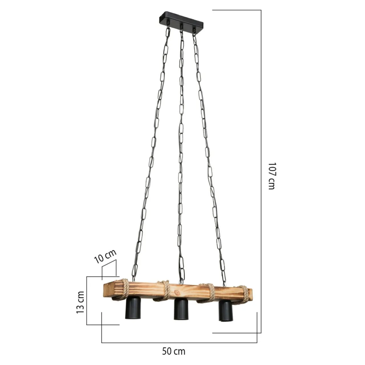 Wysokość lampy można dostosować w zależności od wysokości sufitu. Jej maksymalna długość to 107 cm.