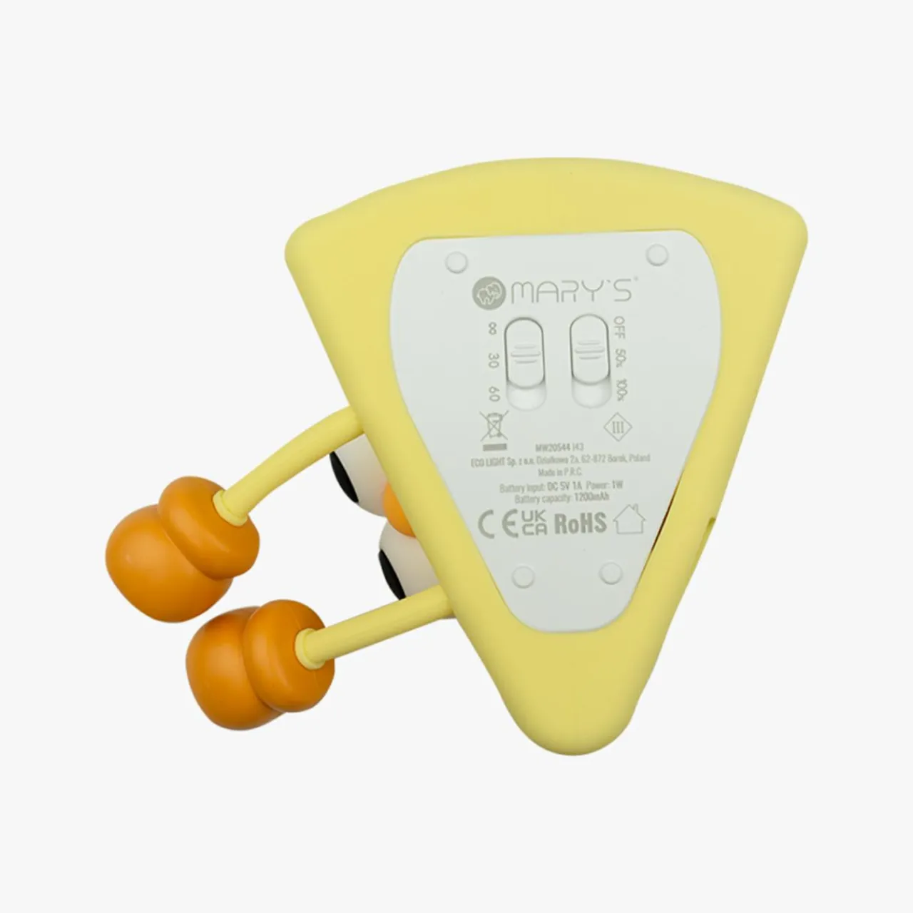 - Jasna kolorystyka sprawia, że lampka pasuje do różnych stylów wnętrz, dodaje im przytulności i humorystycznego akcentu.