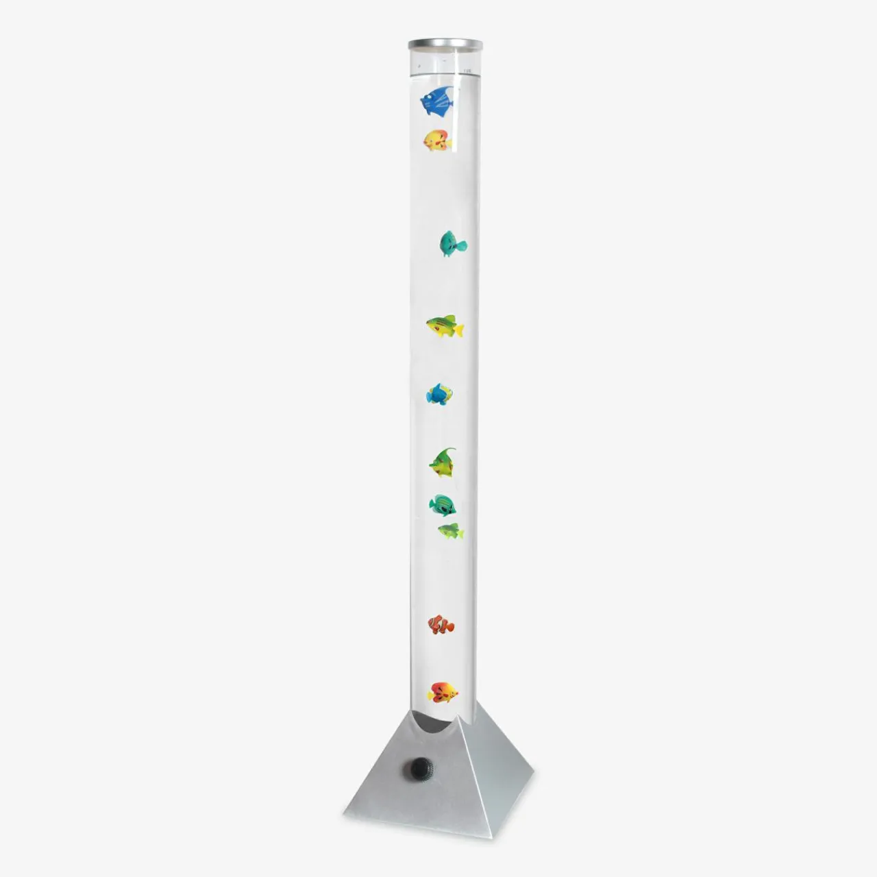 AQUA na kształt walca. Jej czar tworzą wykonane z tworzywa kolorowe rybki pływające w przejrzystej wodzie. Po napełnieniu możesz ją ustawić w rogu pomieszczenia.