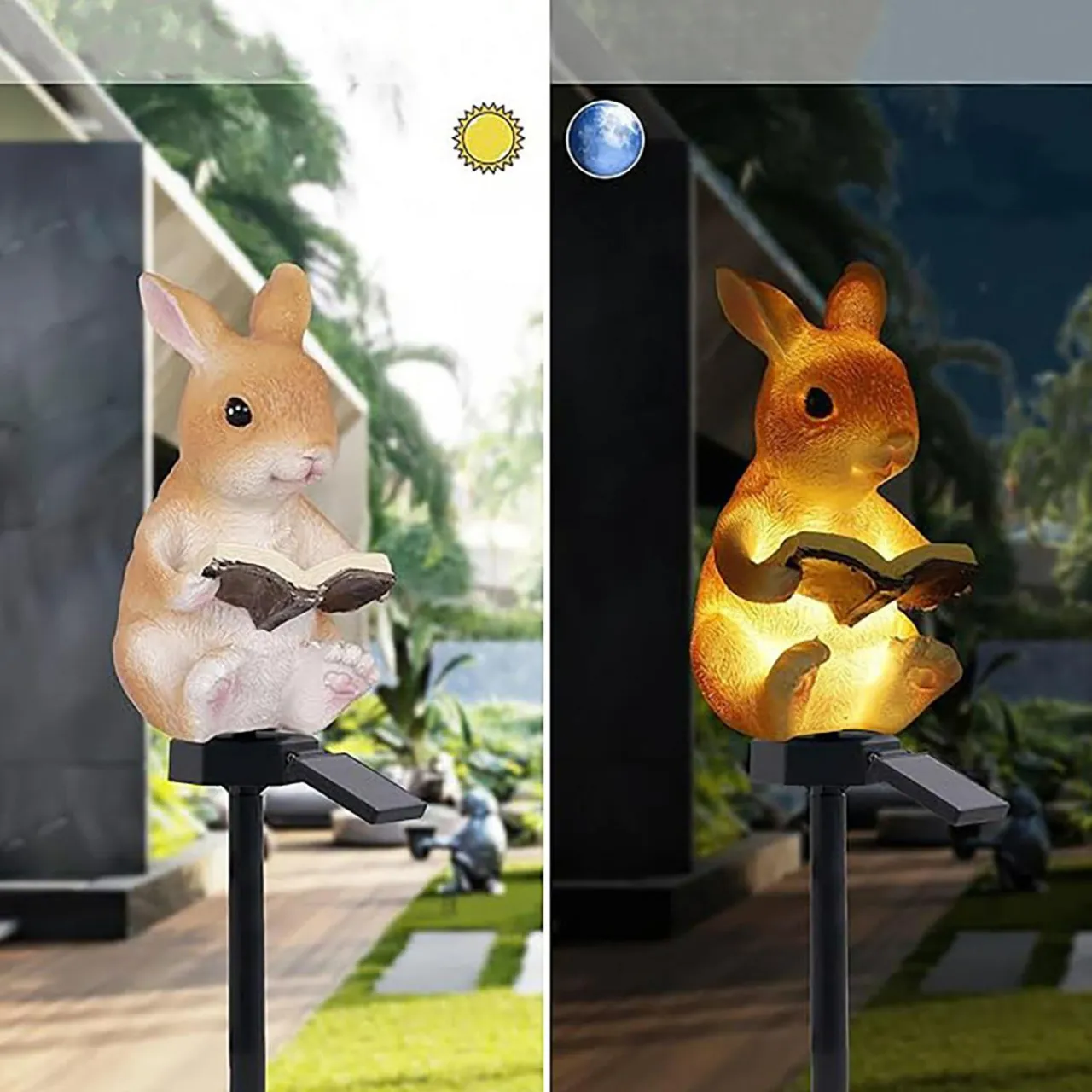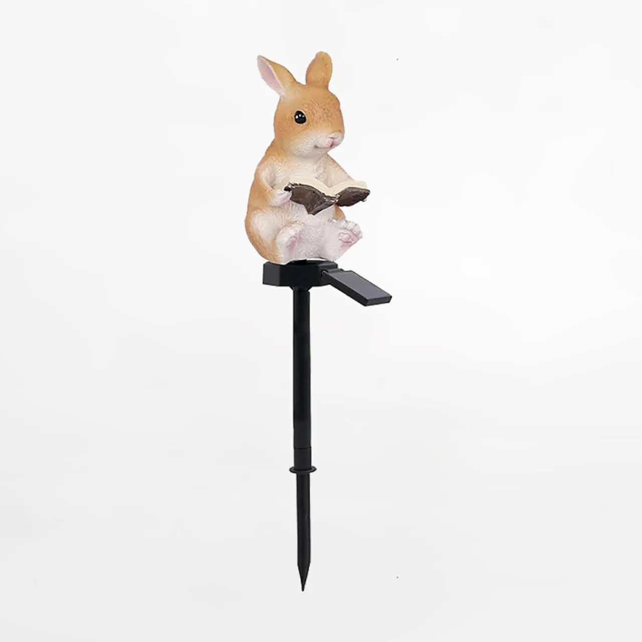 Figurka królika została wykonana z tworzywa i żywicy oraz umieszczona na postumencie z panelem solarnym.