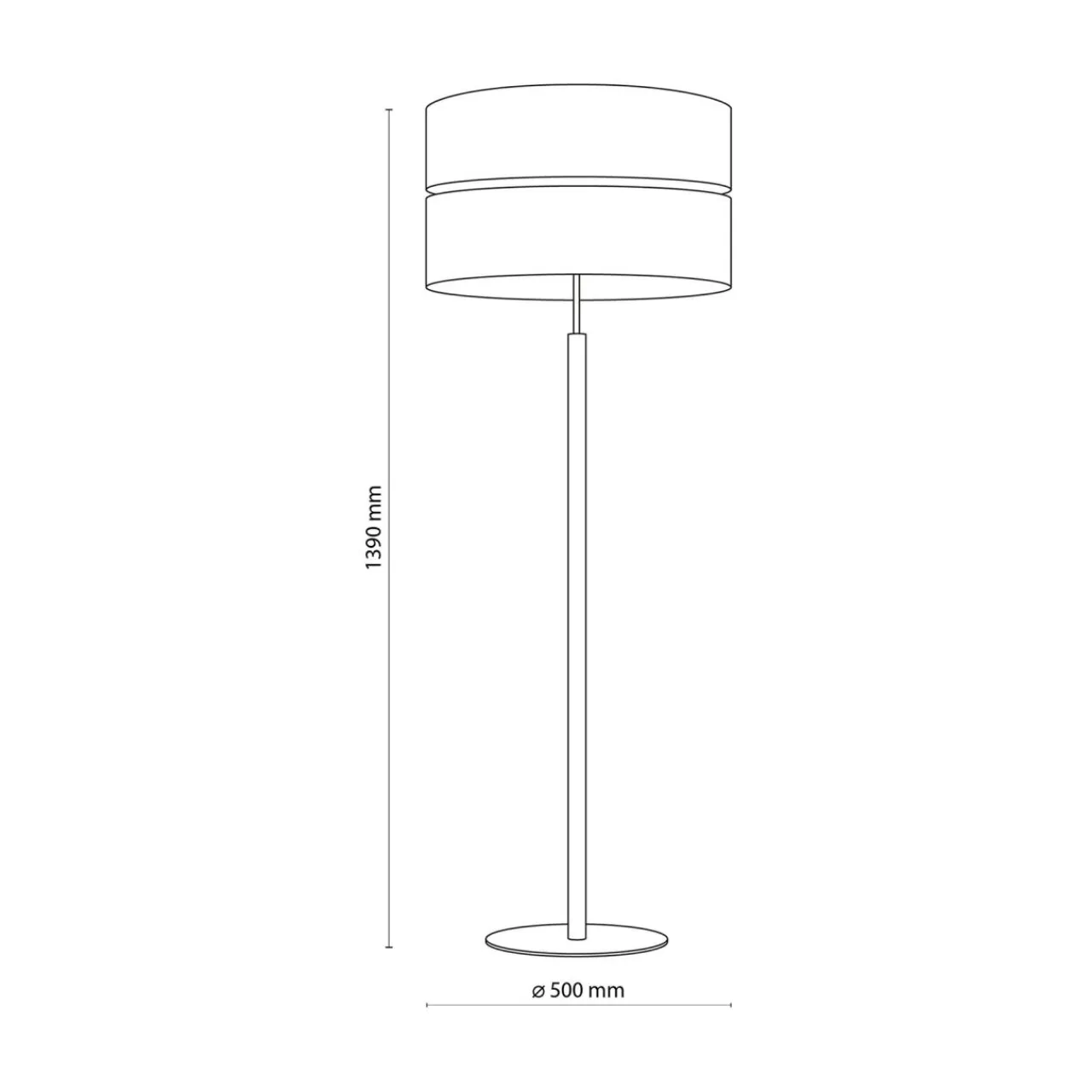 - Okrągły abażur ECO został podzielony na dwie części i wykończony dwoma rodzajami tkaniny w ciepłych odcieniach szarości. Tkaniny różnią się fakturą.