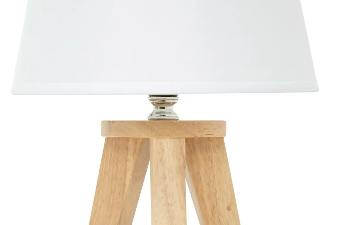 Biały abażur z tkaniny doskonale współpracuje z jasnym odcieniem drewna. Podkreśli zamiłowanie do przestronnych wnętrz i oszczędnej, funkcjonalnej stylistyki.
