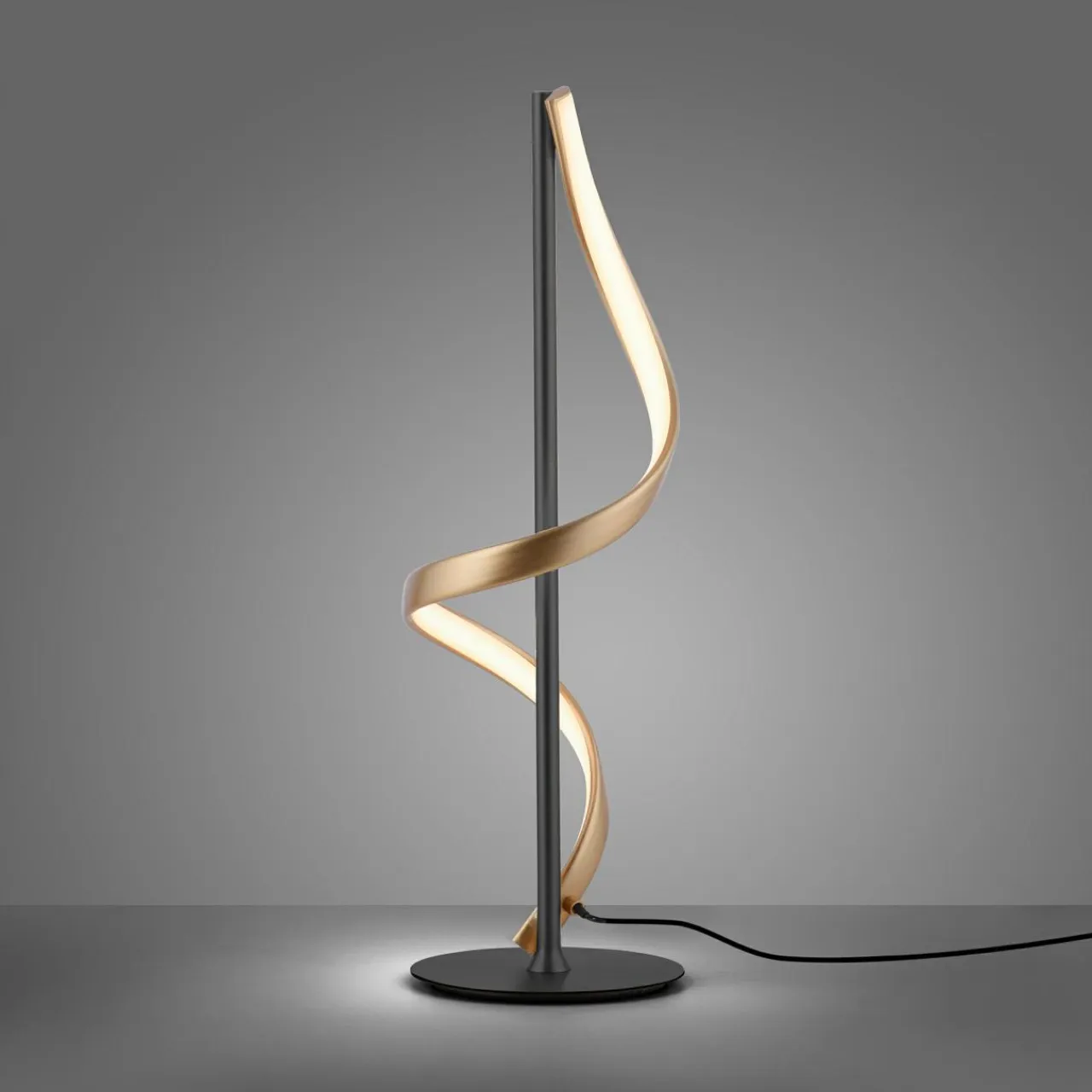 Q-SWING posiada niewielką podstawę, do której dodany został element ozdobny lampy z paskiem LED na całej długości.