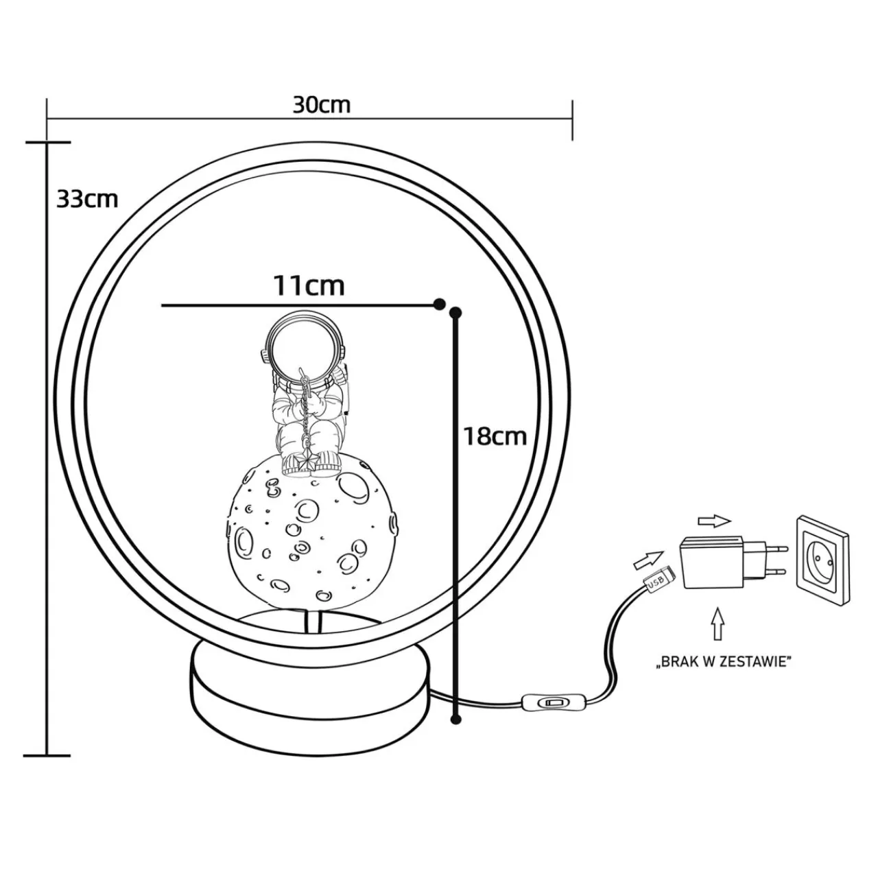 Wbudowane oświetlenie LED sprawia, że po podłączeniu do źródła zasilania ASTRONAUTA zmienia się z dekoracji lampkę nocną.