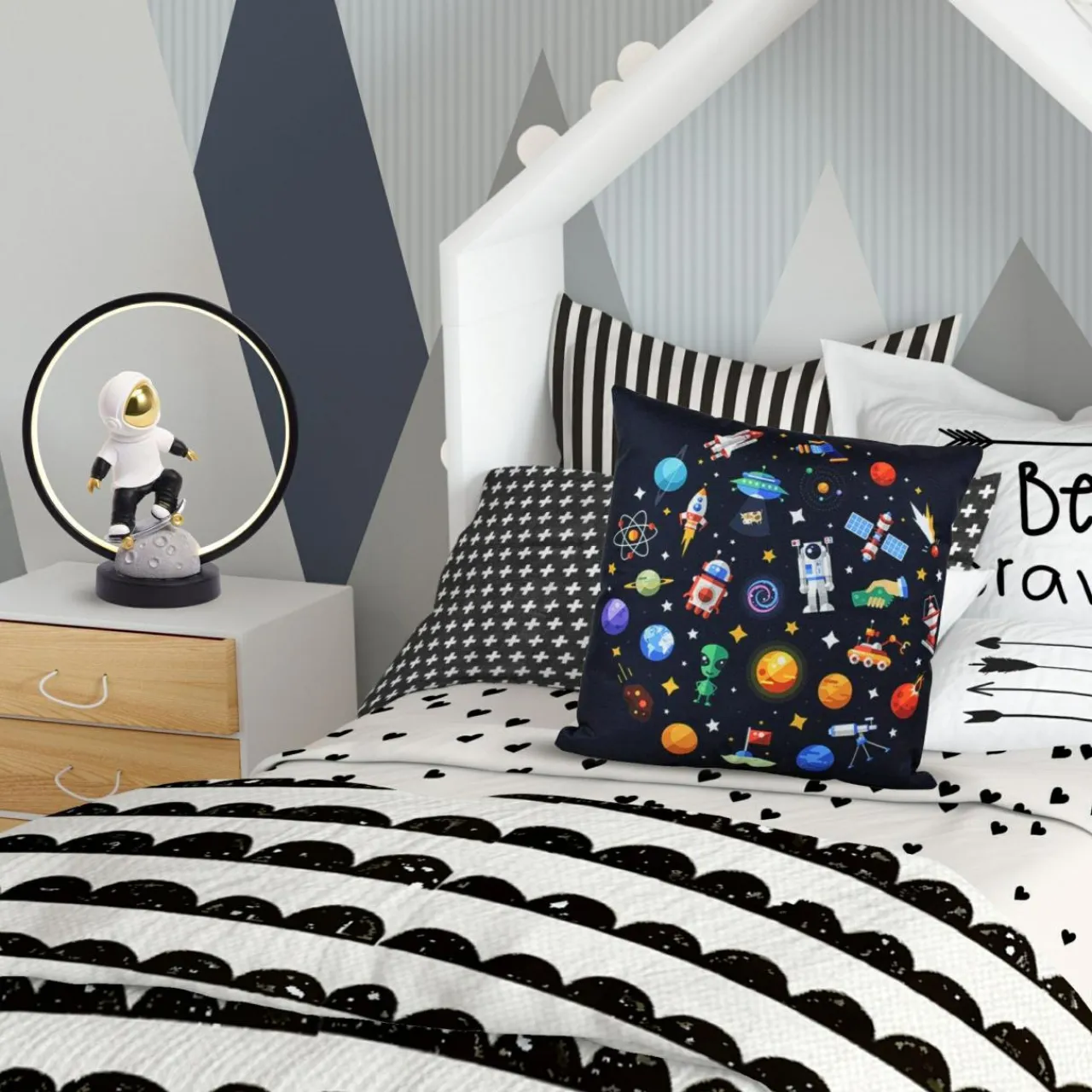 - Lampka z astronautą to doskonały wybór – jej fantazyjny wzór świetnie dopełni wnętrza pokoju dziecięcego i młodzieżowego.